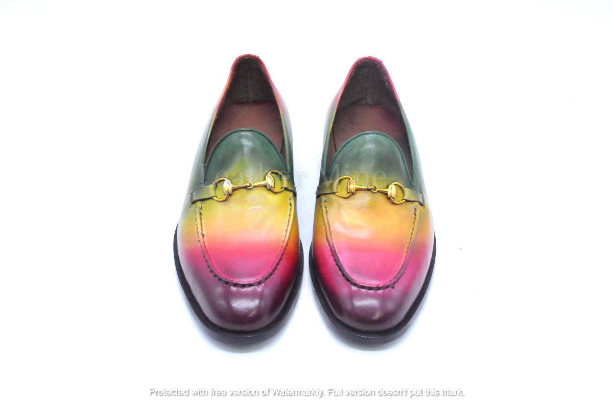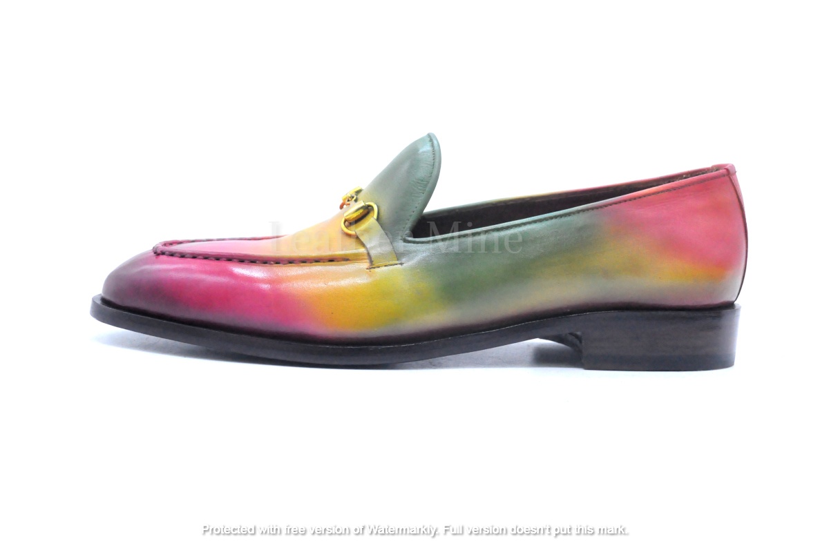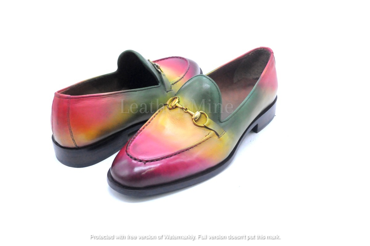 Leather Dress Shoes Mens, Handmade Multi Color Patina Loafers Custom Made Shoes