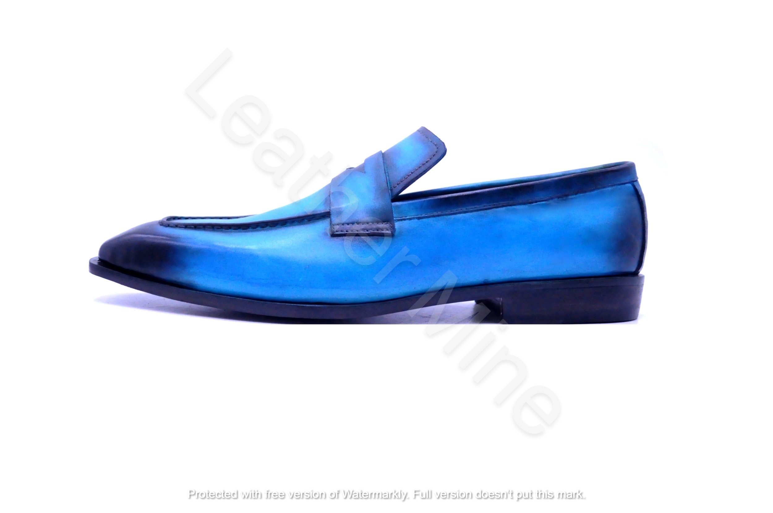 Men's Handmade Blue patina Shoes, Leather Dress Shoes Mens