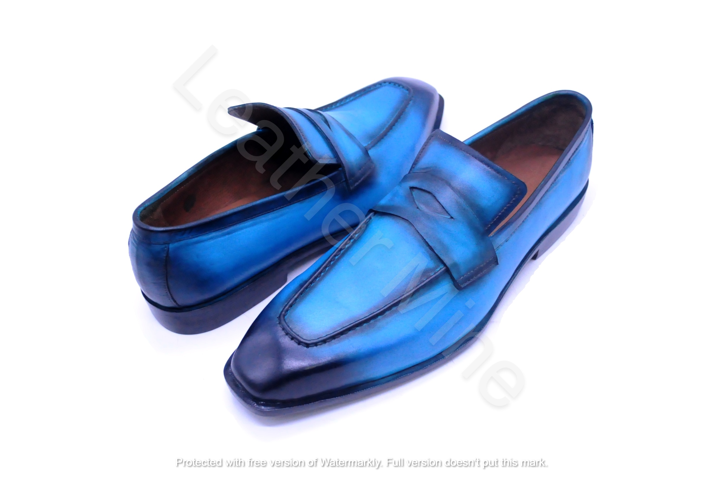 Handmade Men's Blue patina Custom Made Dress Shoes Mens