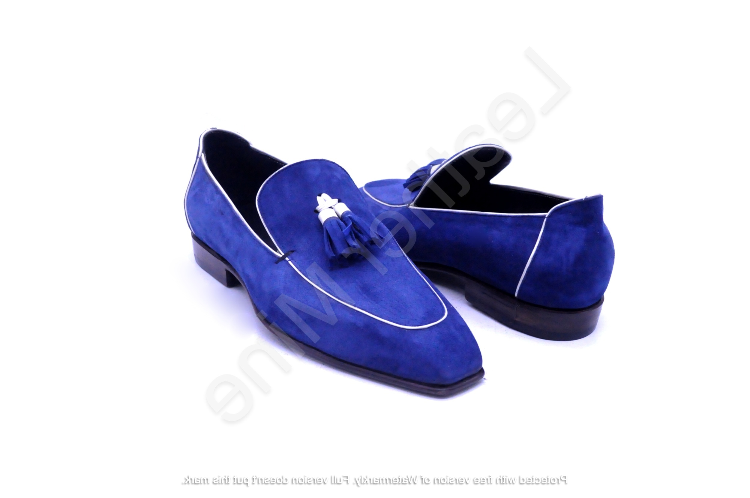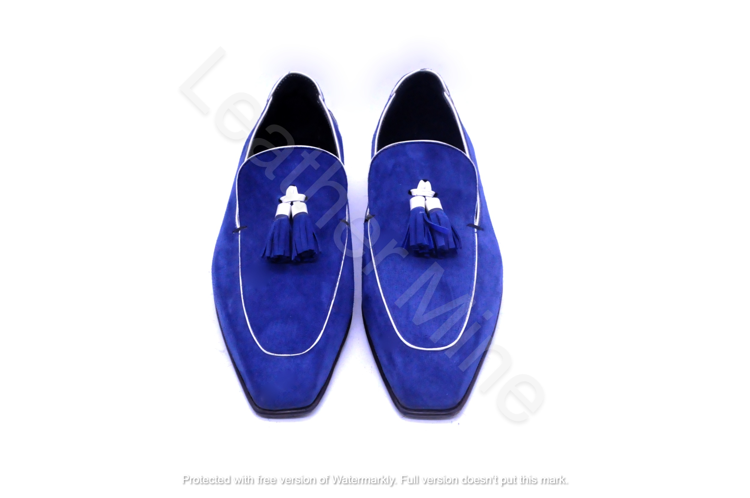 Handmade Men's Blue Suede Leather Loafers Formal Genuine Leather Shoes For Men