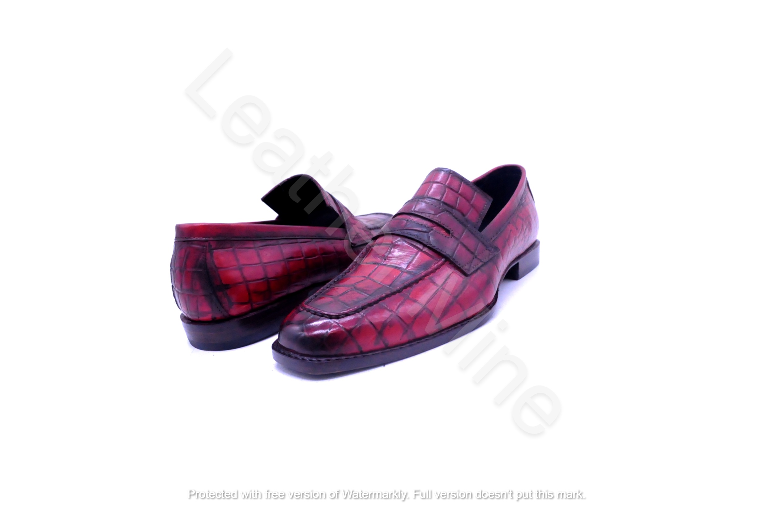 Copy of Handmade Men's Red Patina Crocodile Leather Dress Loafers Shoes For Men