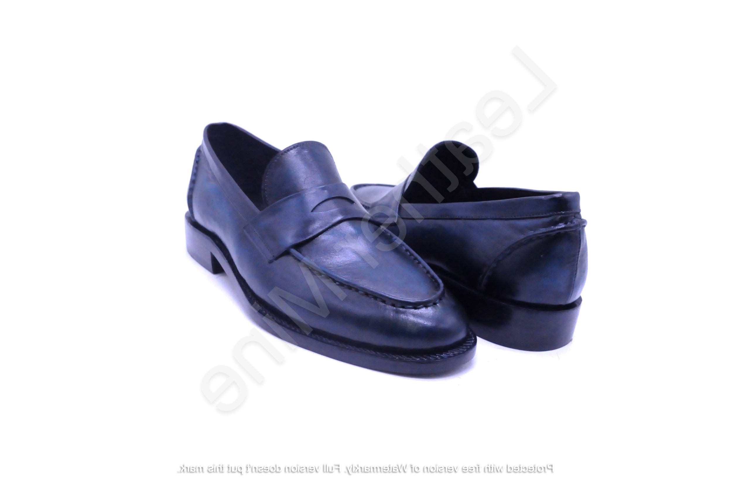 Handmade Men's Genuine Leather Loafers, Blue Patina Dress Loafers Shoes For Men