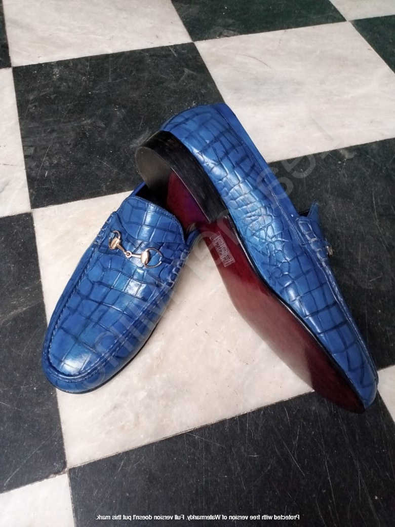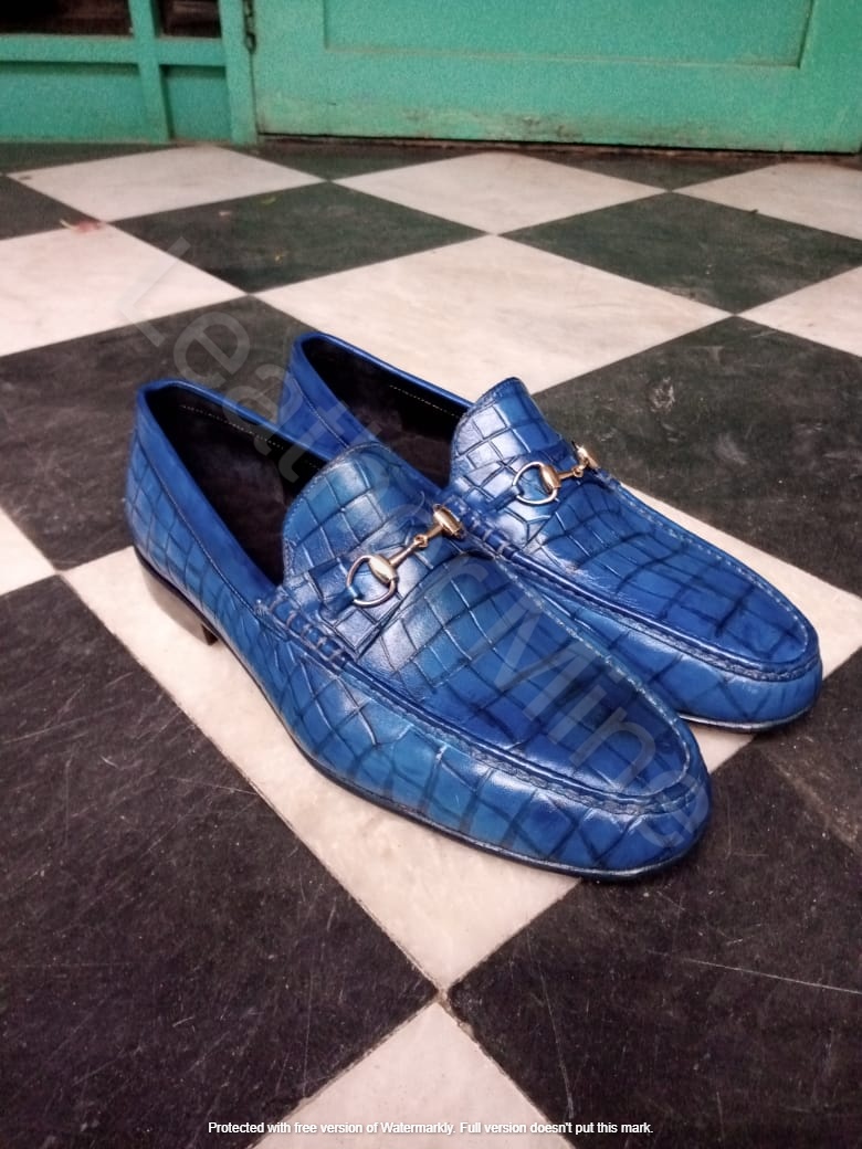 Handmade Men's Blue Crocodile Leather Loafers Formal Shoes For Men