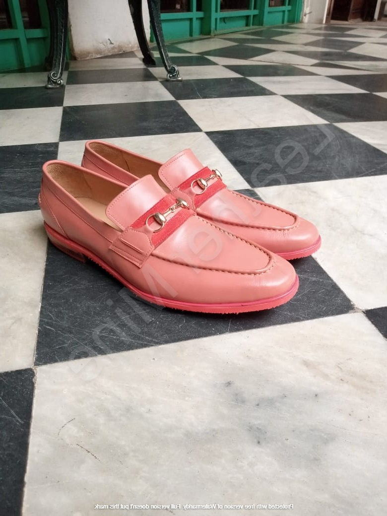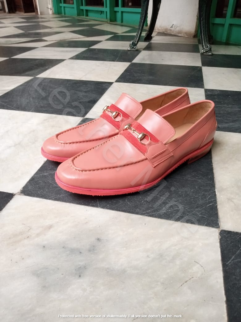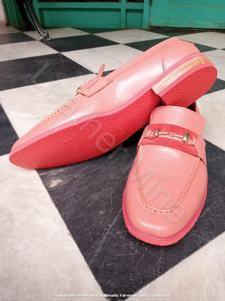 Handmade Men's Pink Patina Leather Loafers Formal Shoes For Men