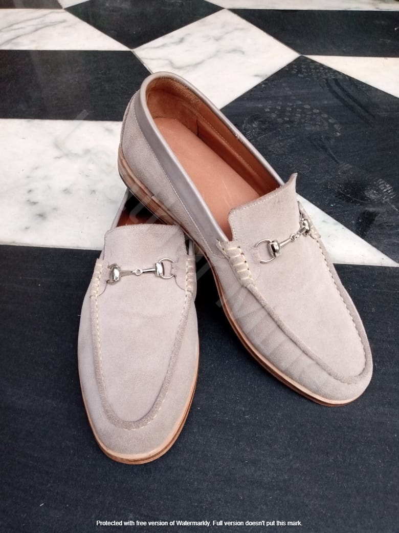 Men's Off white Handmade Leather Loafers, Leather Dress Shoes Mens
