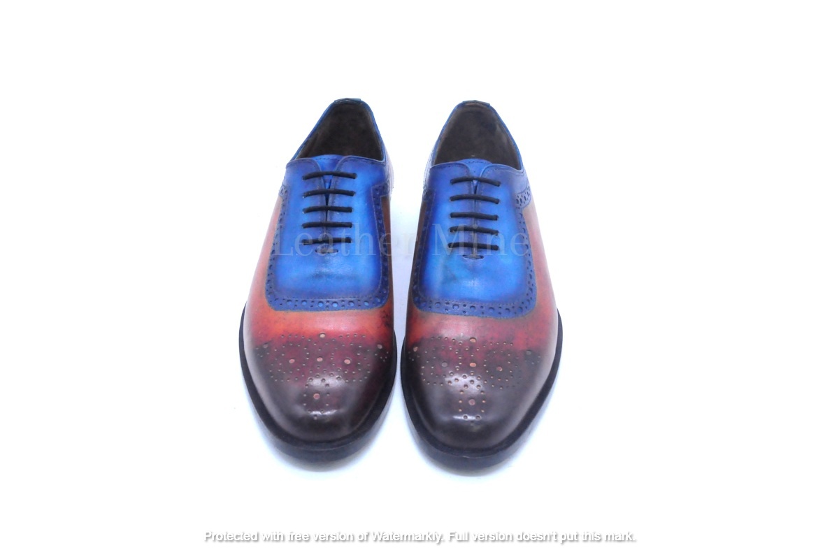 Men's Handmade Blue Patina Semi Brogue Oxfords Leather Formal Shoes For Men