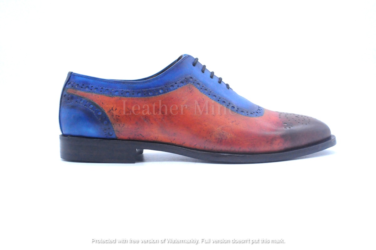 Men's Handmade Blue Patina Semi Brogue Oxfords Leather Formal Shoes