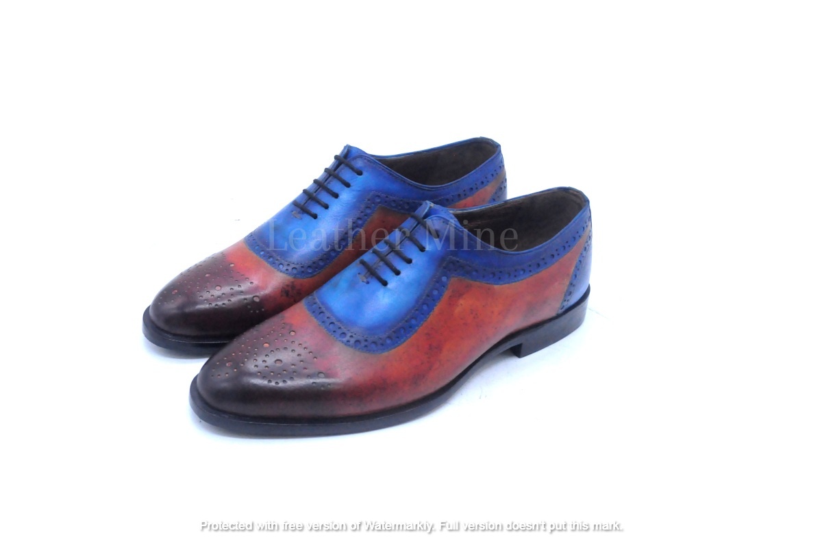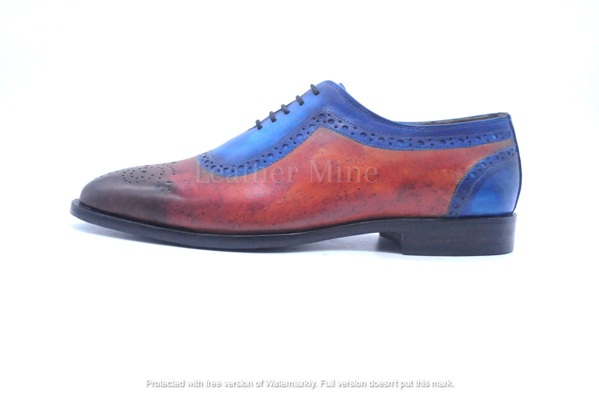 Men's Handmade Blue Patina Semi Brogue Oxfords Leather Dress Shoes