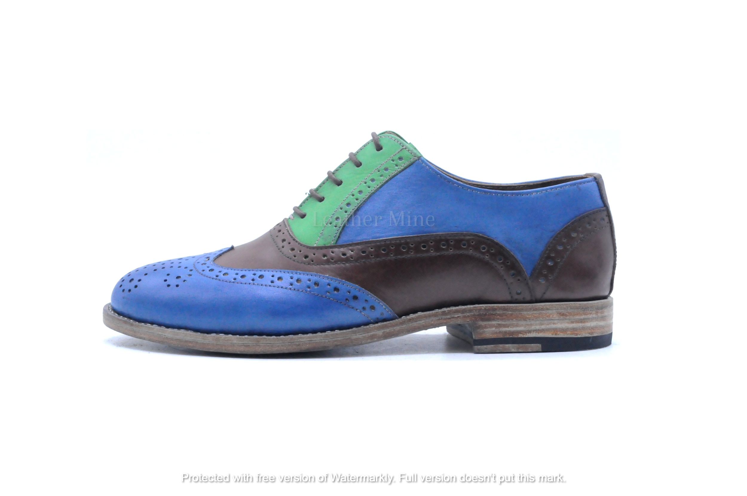 Men's Handmade Two Tone Green Brogue Oxfords Leather Dress Shoes For Men.