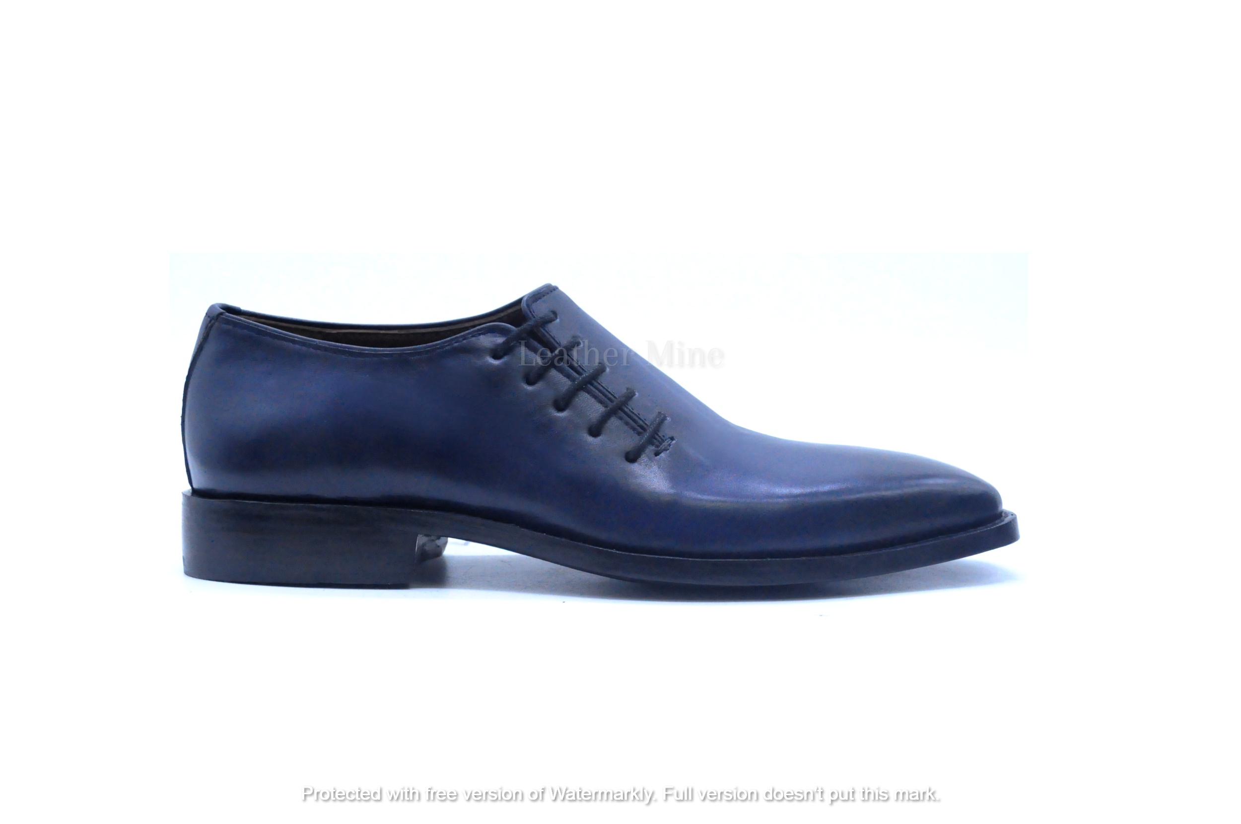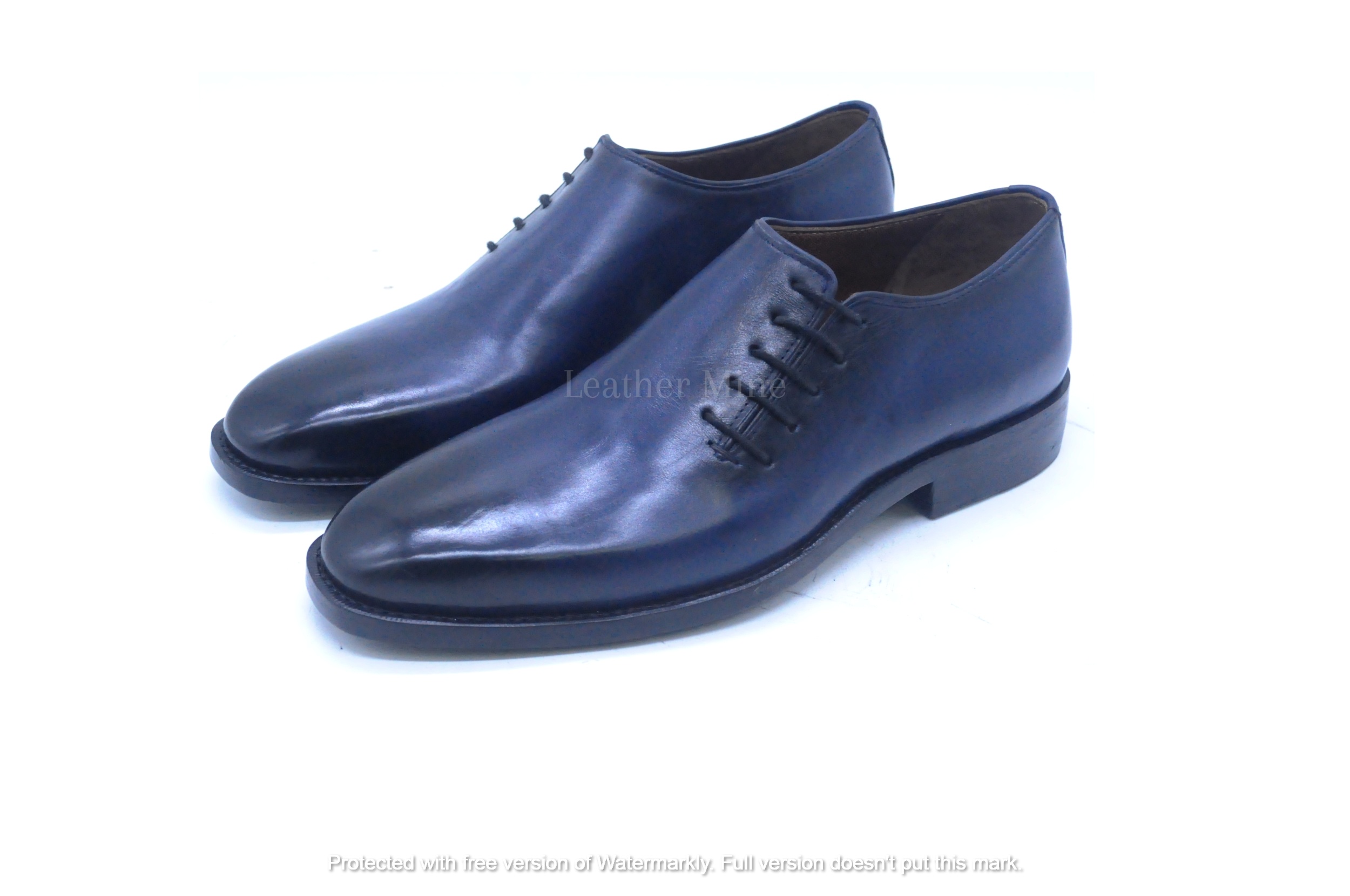 Men's Handmade Leather Shoes Blue Whole Cut Oxfords Dress Shoes