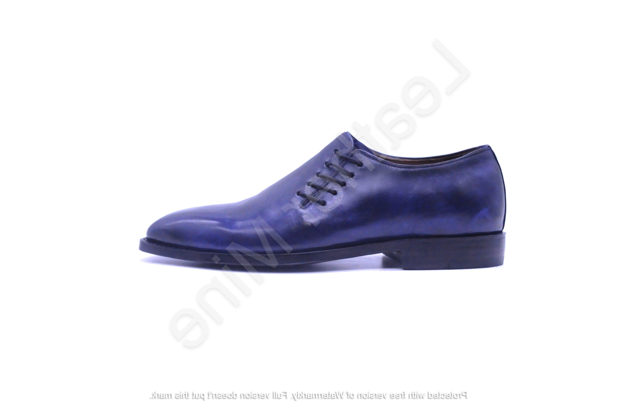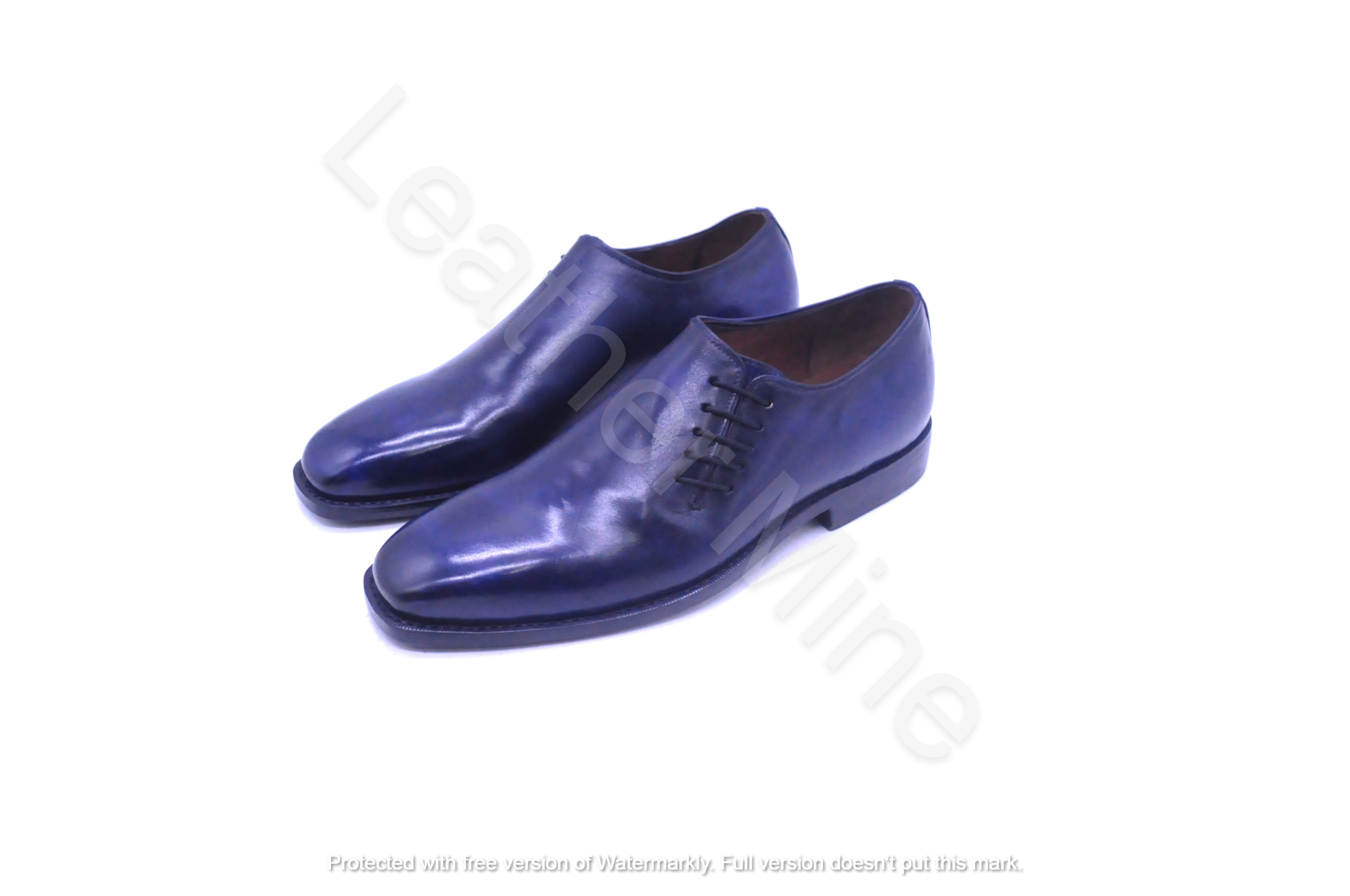 Handmade Men's Blue Patina Leather Whole Cut Oxford Formal Shoes For Men