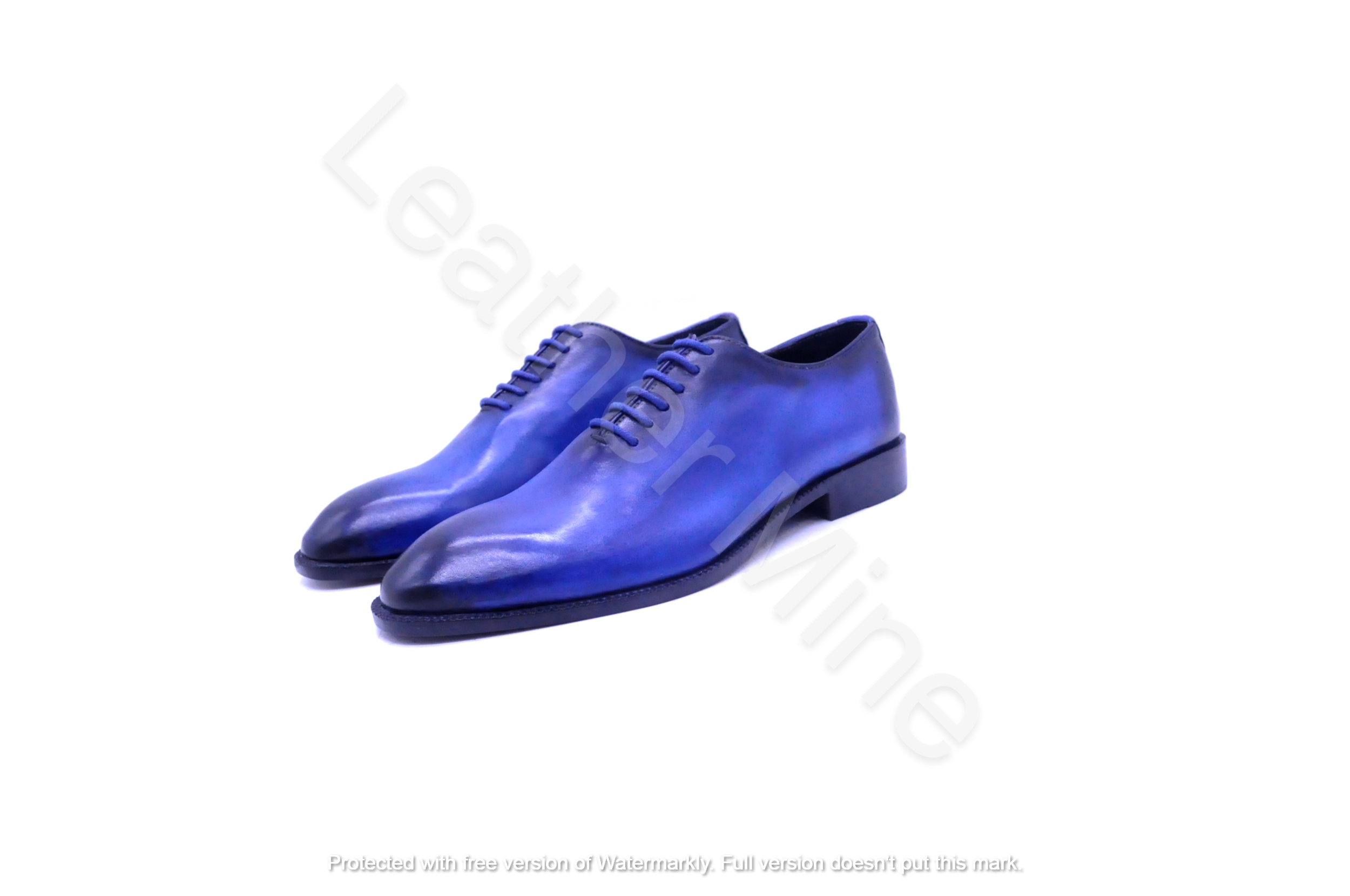 Leather Shoes Men, Handmade Blue Patina Whole Cut Oxford Shoes For Men