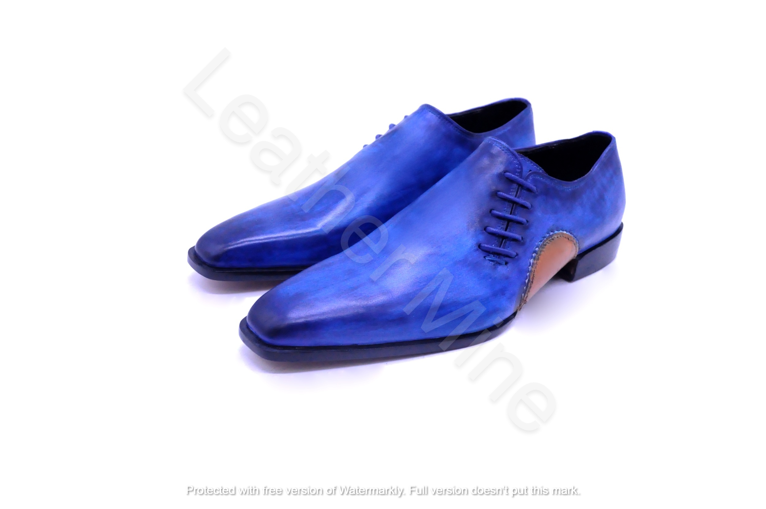 Leather Shoes Men, Handmade Blue Leather Oxfords Shoes