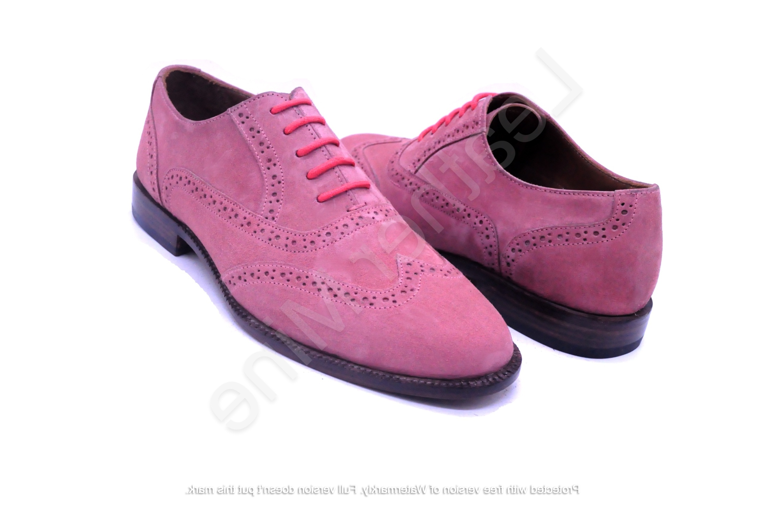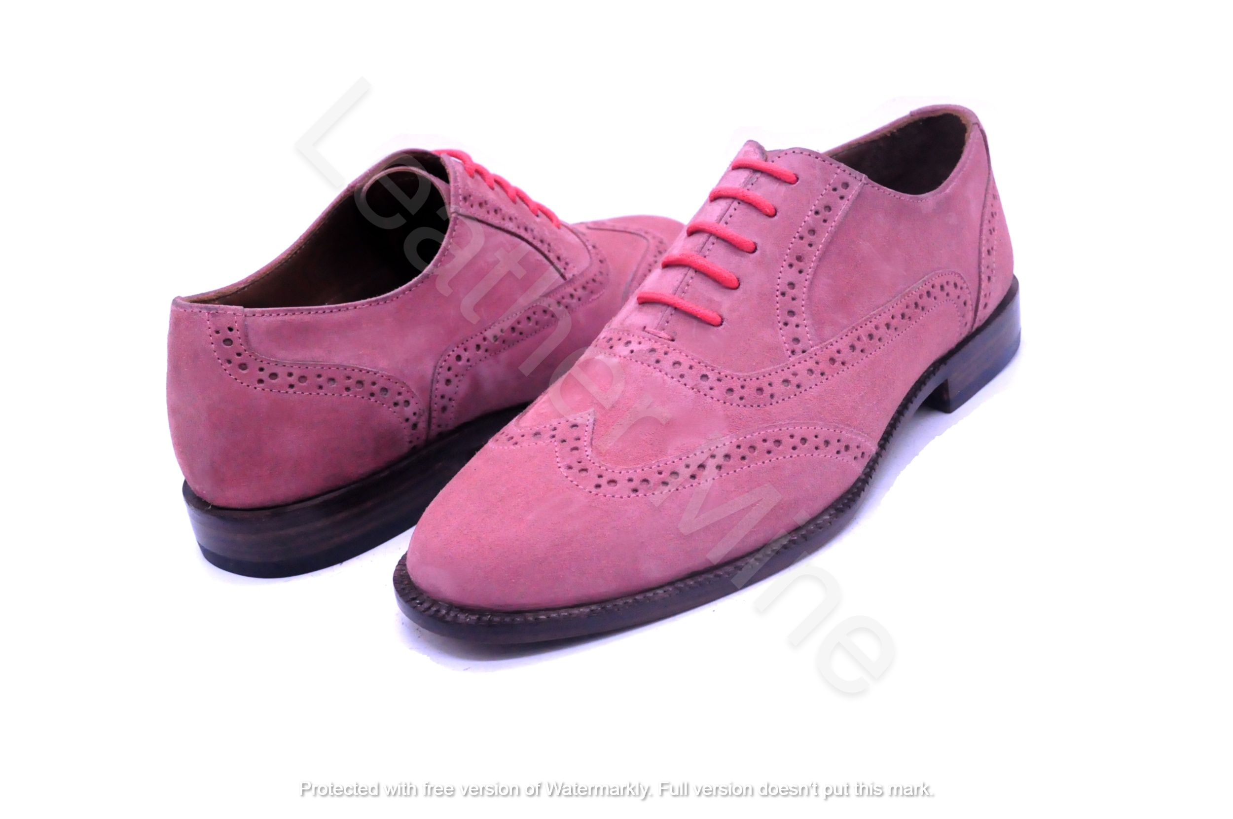 Handmade Men's Pink Suede Wingtip Oxfords Leather Formal Shoes For Men