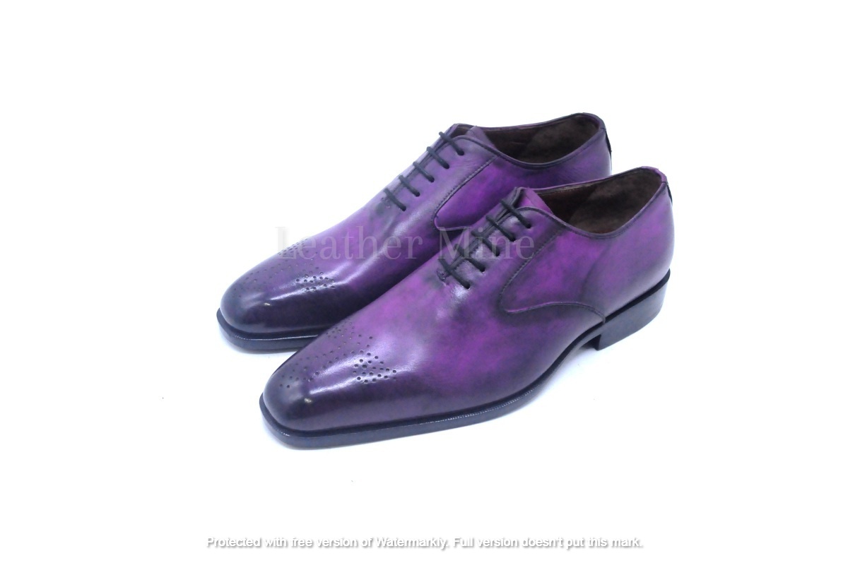 Handmade Purple Patina Leather Oxfords Custom Shoes For