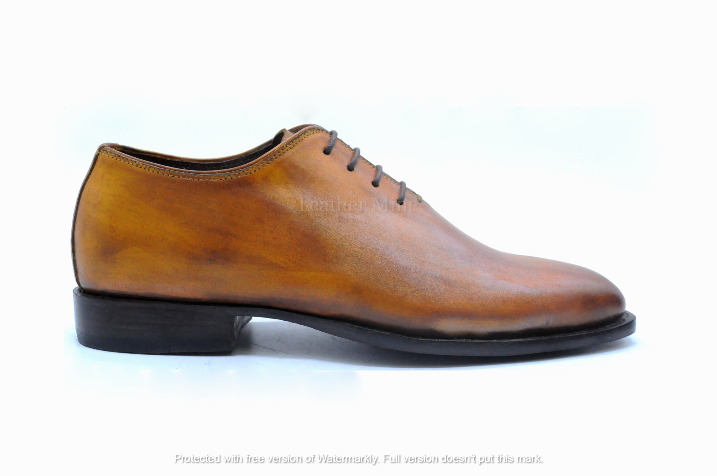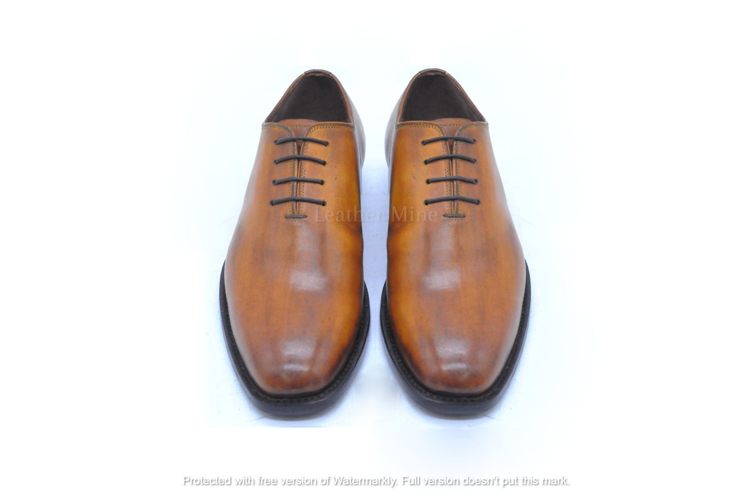 Handmade Men's Tan Patina Whole Cut Oxfords Leather Shoes For Men