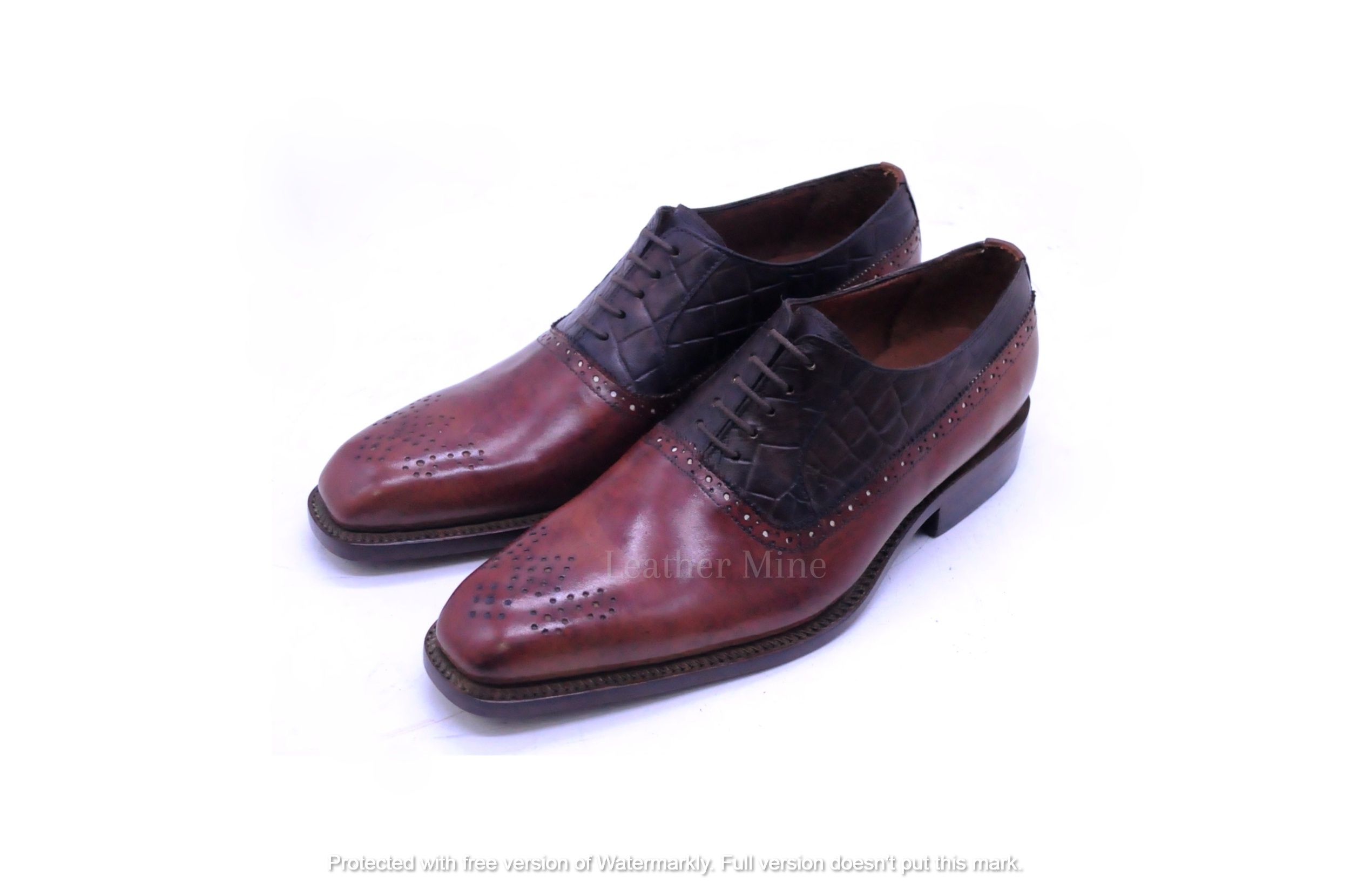 Men's Handmade Tan Patina Leather Oxfords Formal Shoes For Men