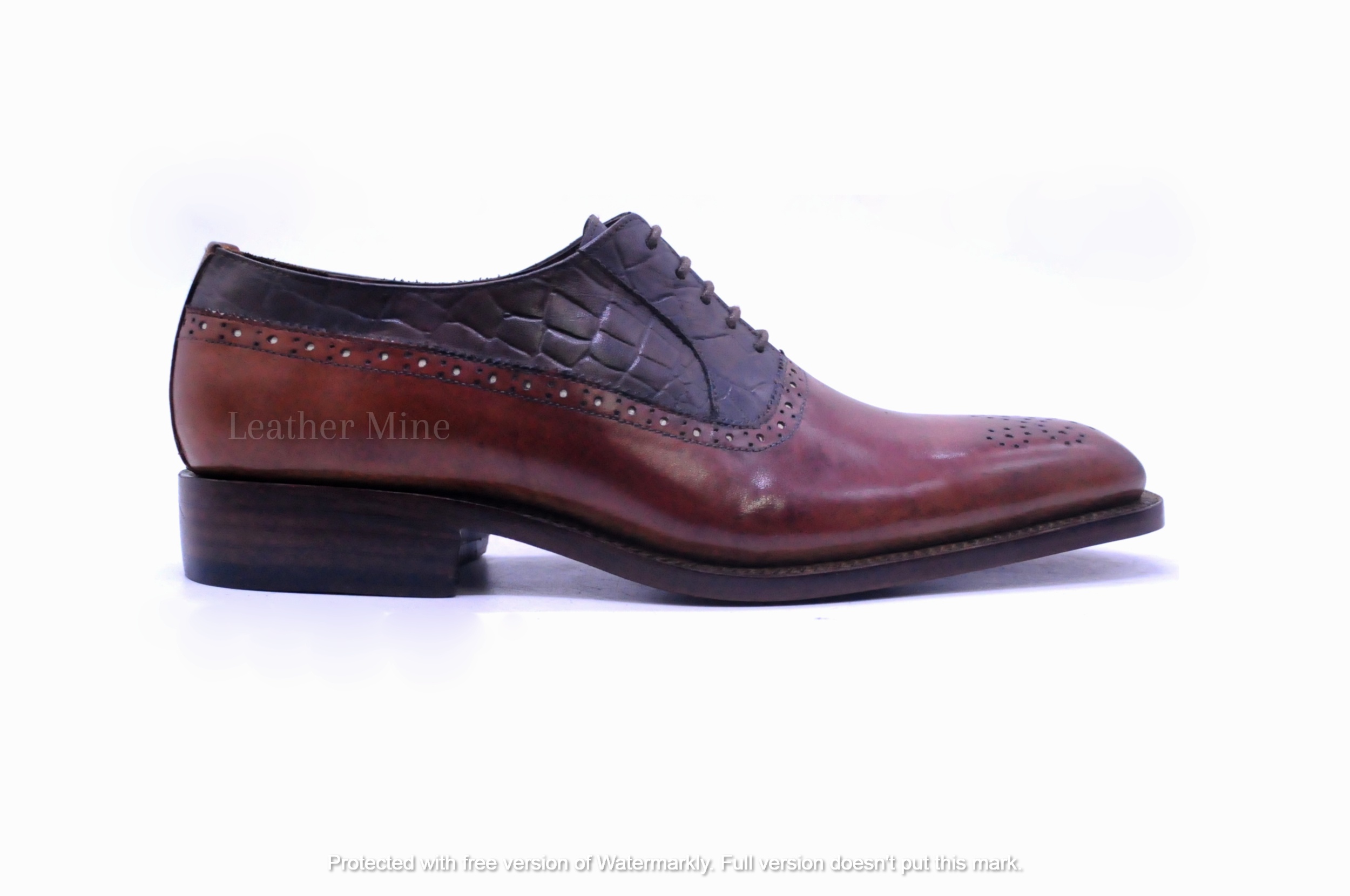 Handmade Men's Tan Patina Leather Oxfords custom Shoes For Men