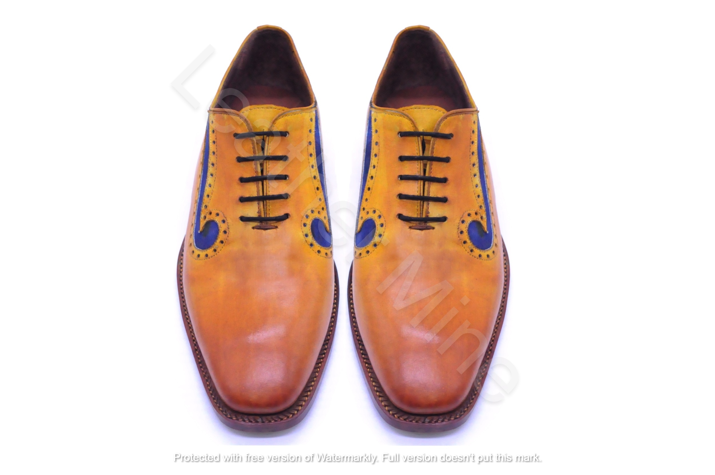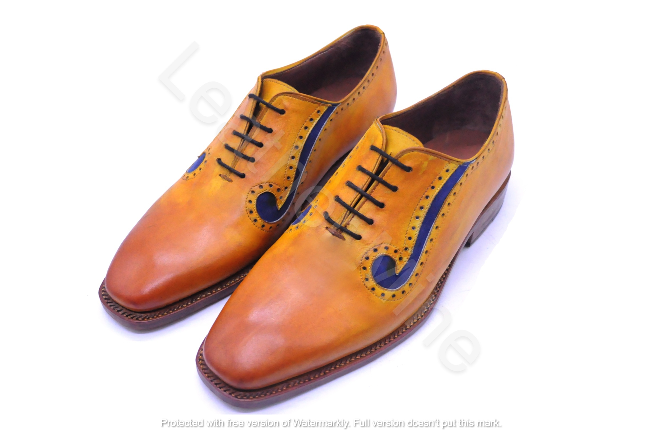 Men's Handmade Tan Patina Leather Oxfords Custom Shoes For Men