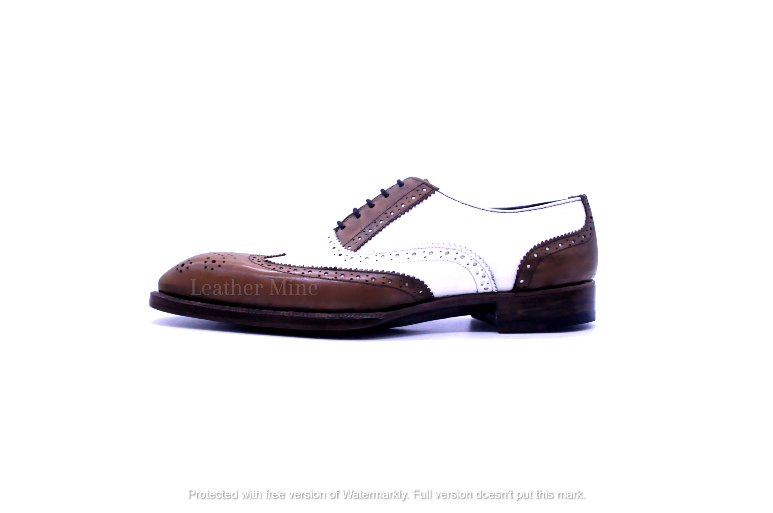 Handmade Men's Two Tone White Leather Oxfords Dress Shoes For Men