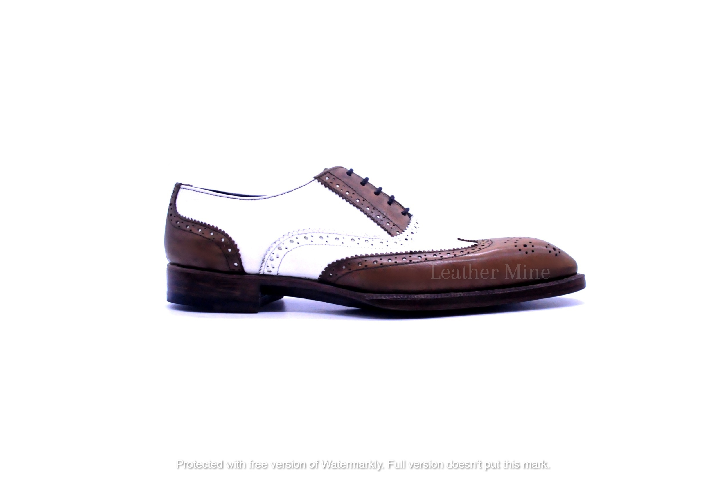 Handmade Men's White Leather Wingtip Oxfords Formal Shoes