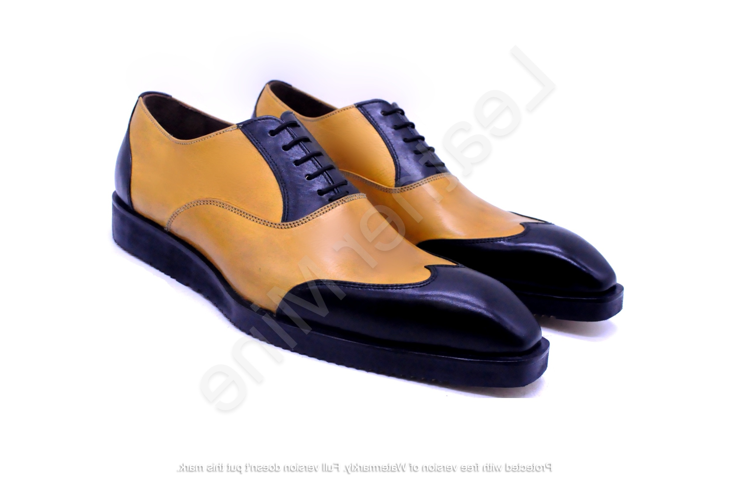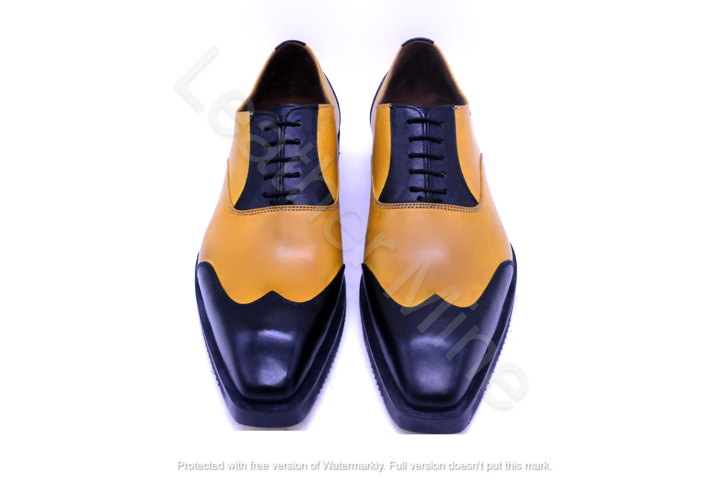 Handmade Yellow Leather Lace Up Wingtip Oxfords Formal Shoes.