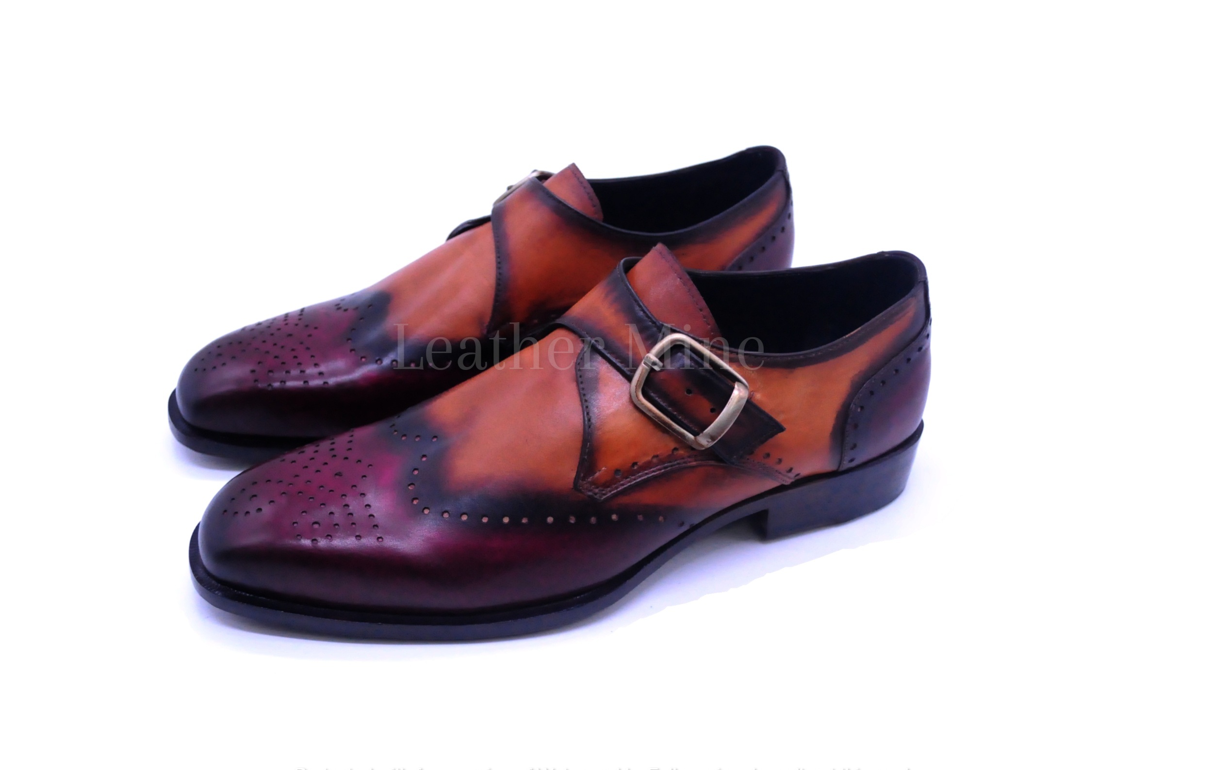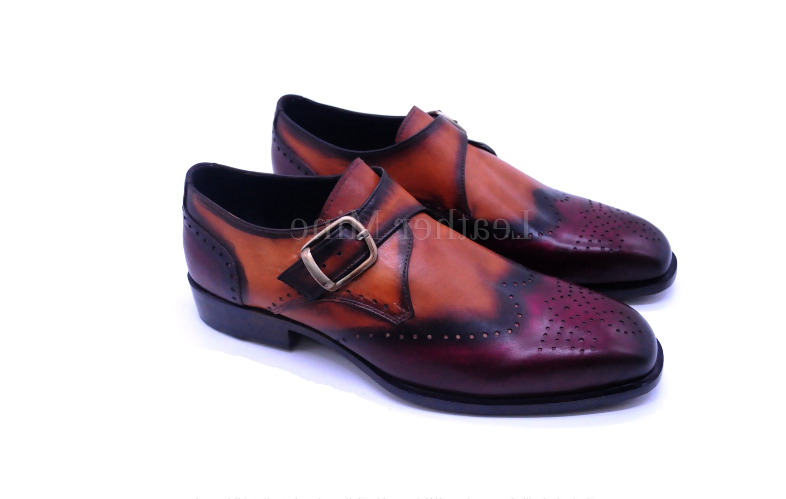 Men's Dress Shoes, Handmade Tan Patina Monk strap Leather Shoes