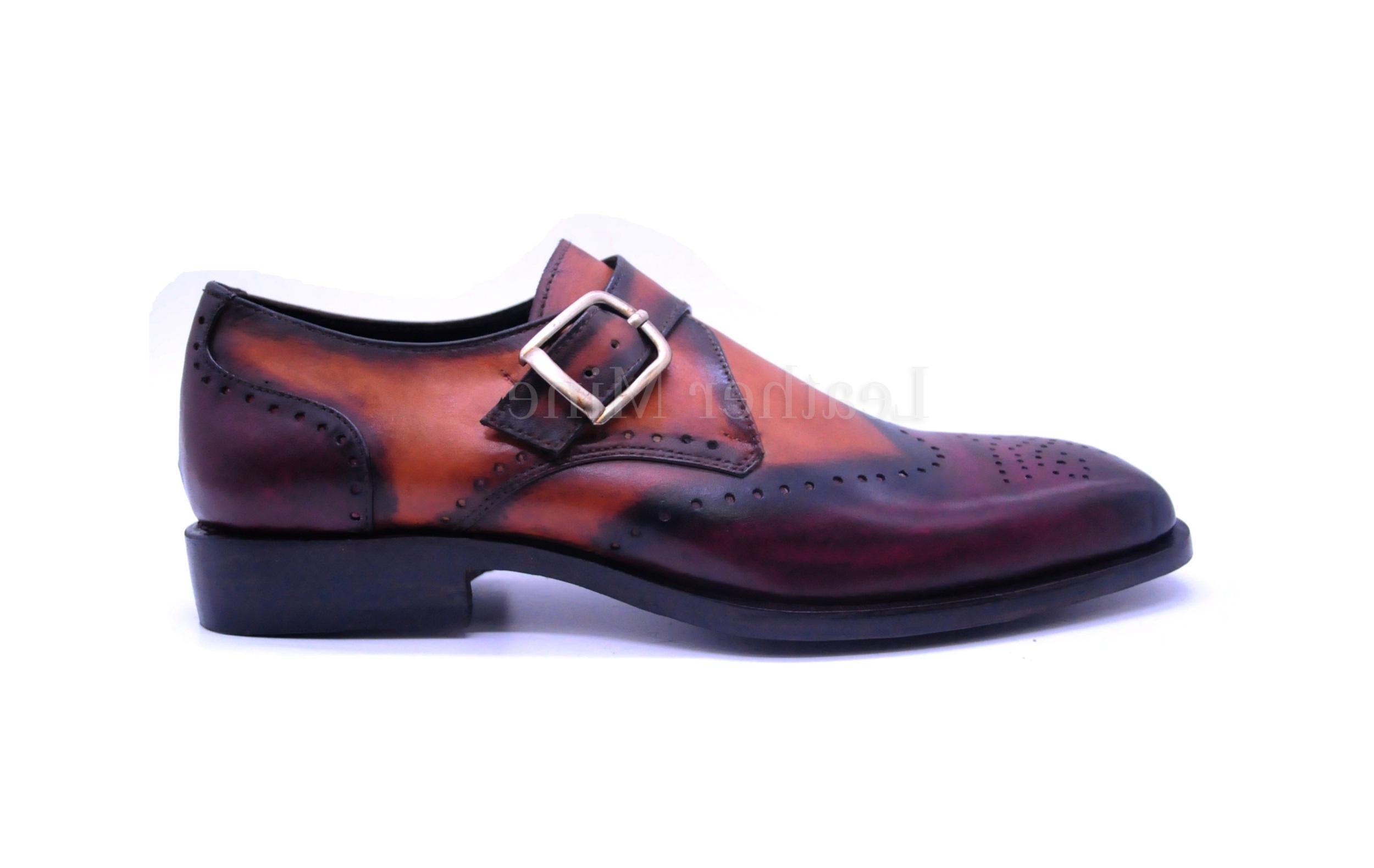 Men's Monk Dress Shoes, Handmade Tan Monk strap Leather Shoes
