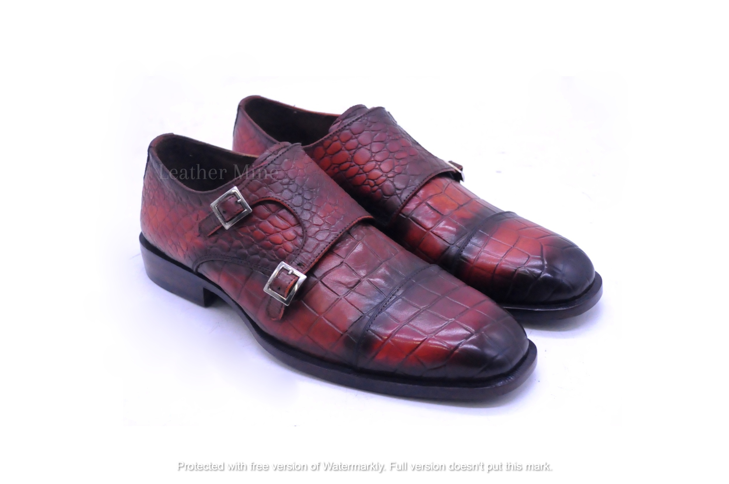 Men's Monk Dress Shoes, Handmade Tan Patina Double Monk strap Leather Shoes