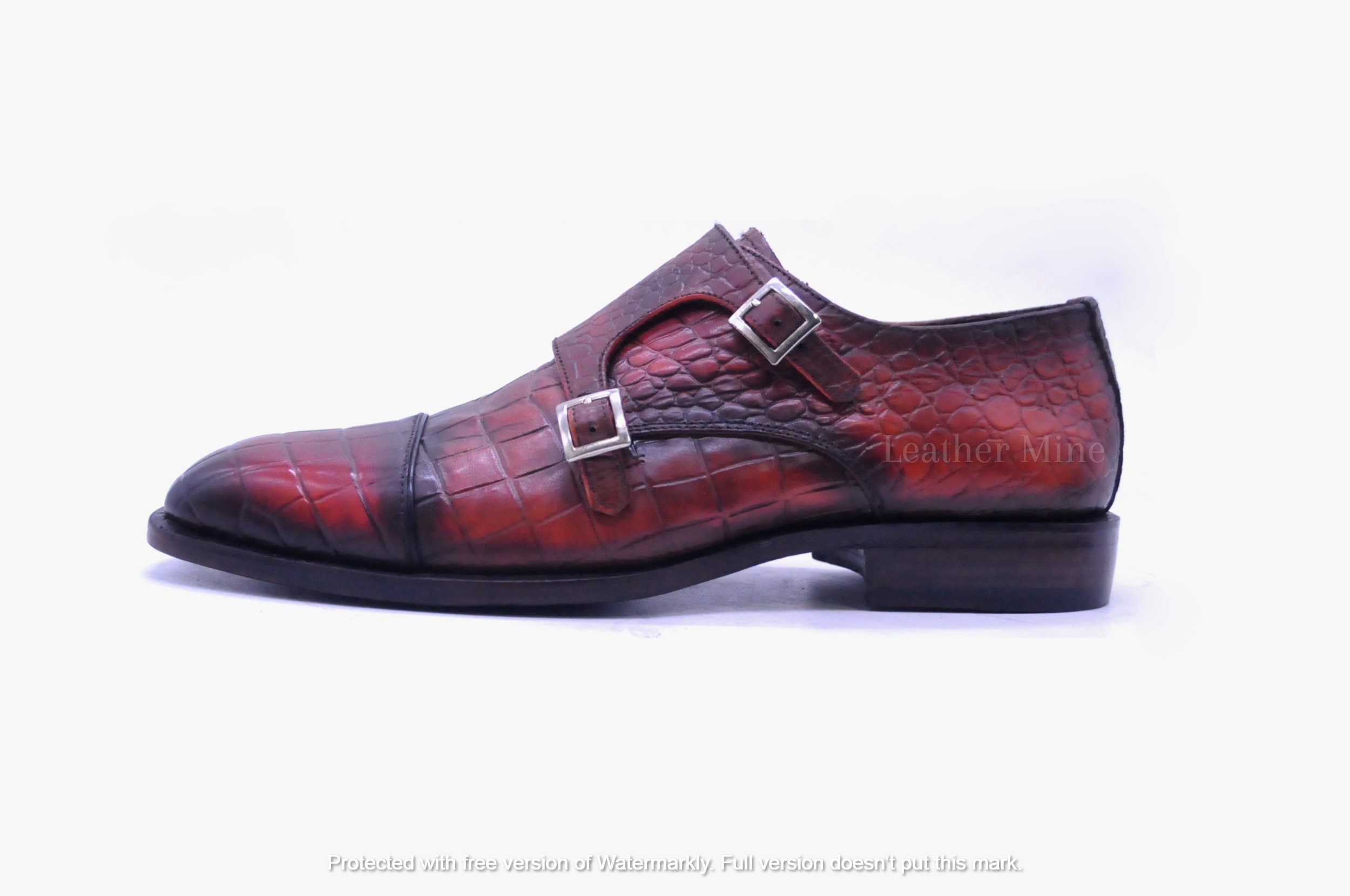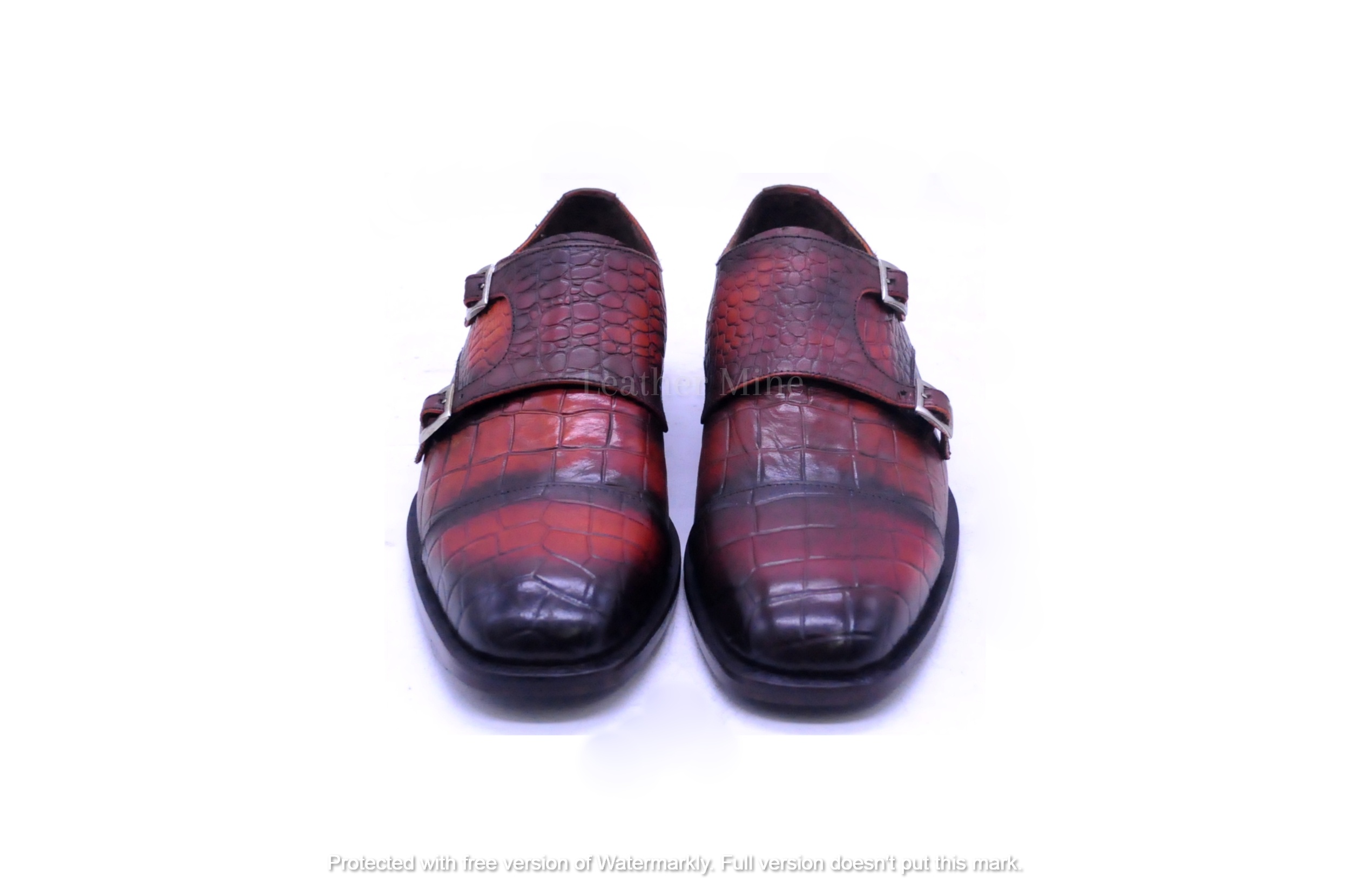 Men's Leather Monk Strap Shoes, Handmade Tan Patina Double Monk Shoes For Men