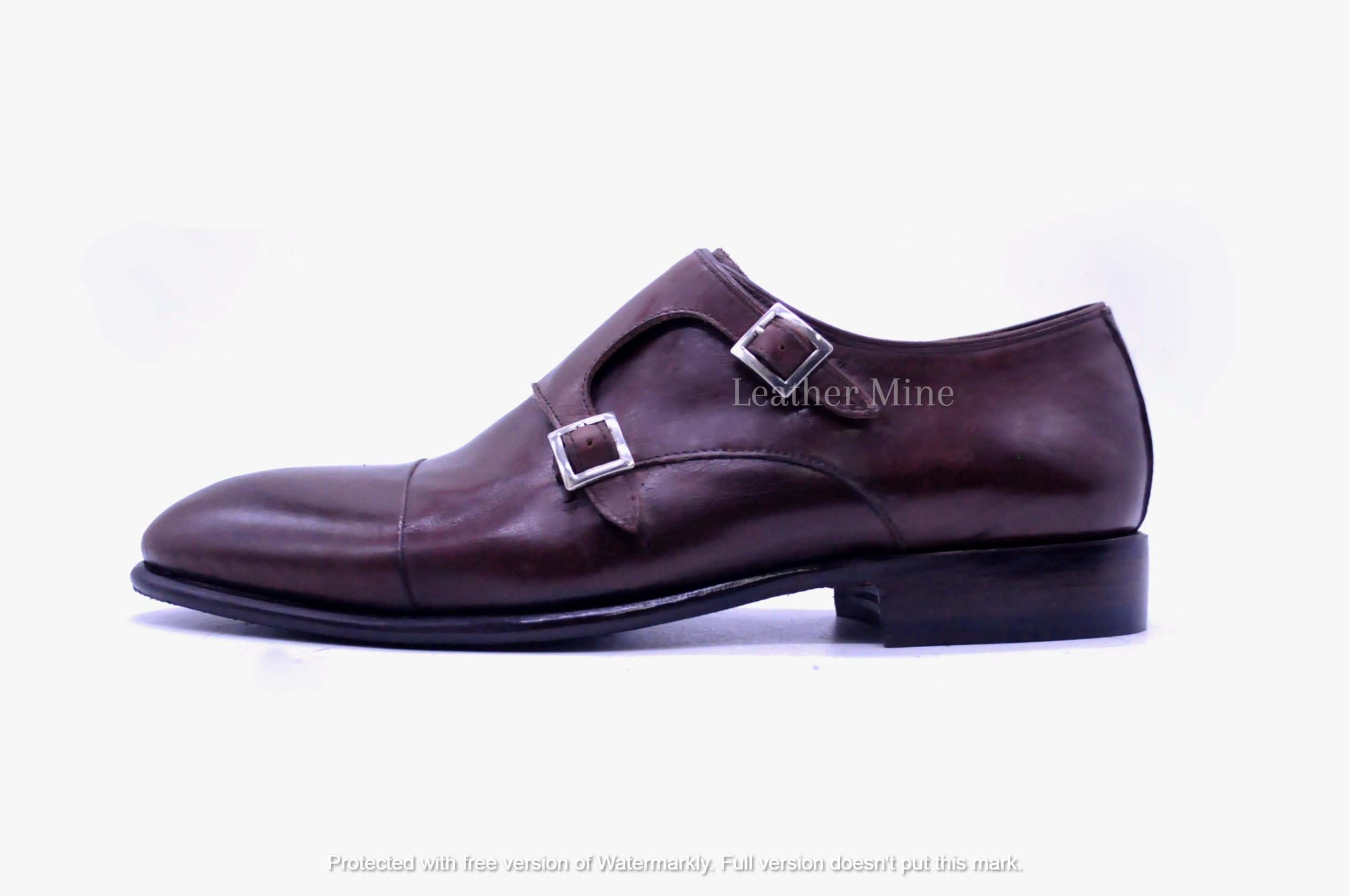 Men's Handmade Brown Leather Double Monk Strap Dress Shoes