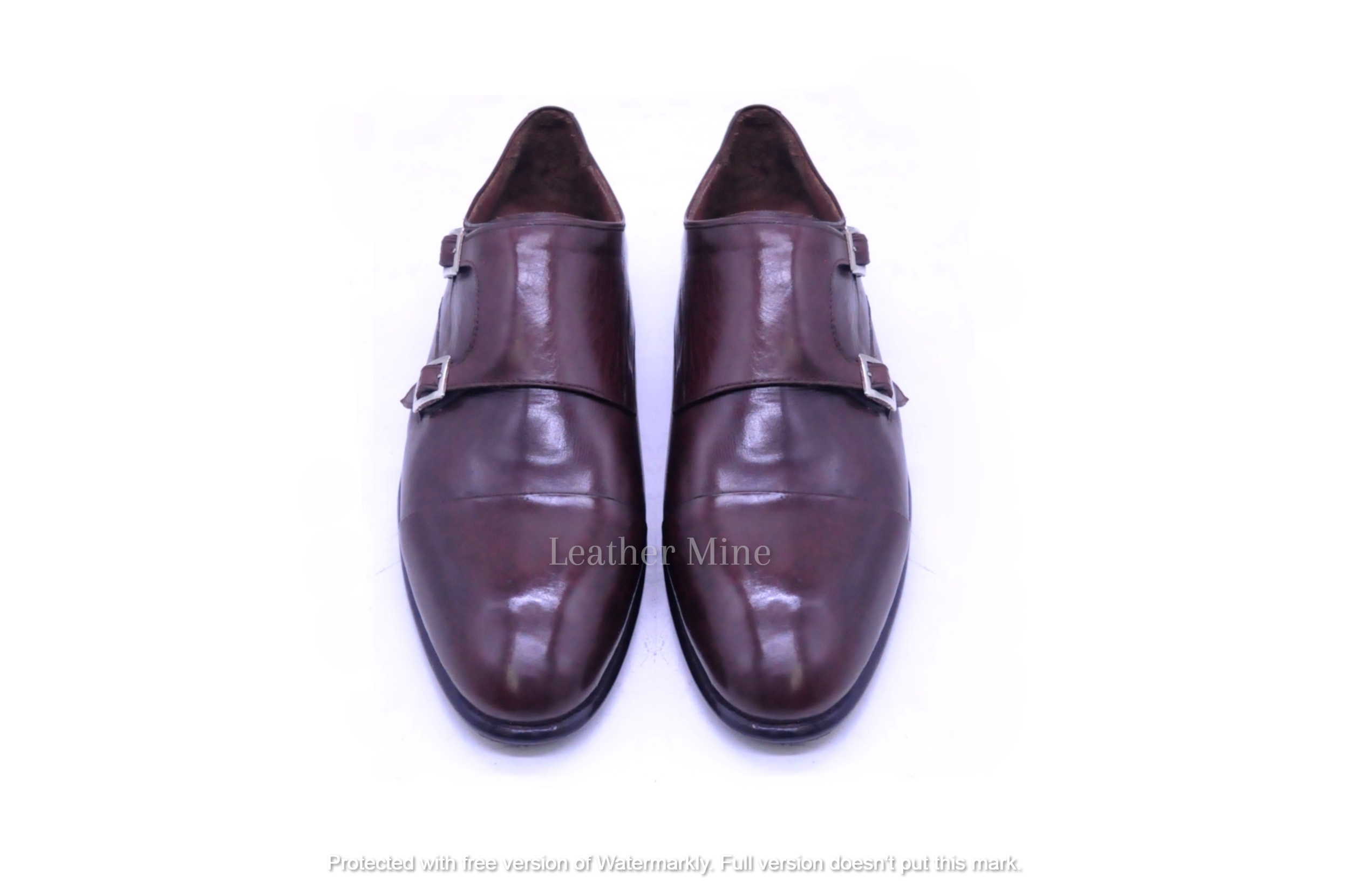 Men's Handmade Brown Leather Double Monk Strap Formal Shoes