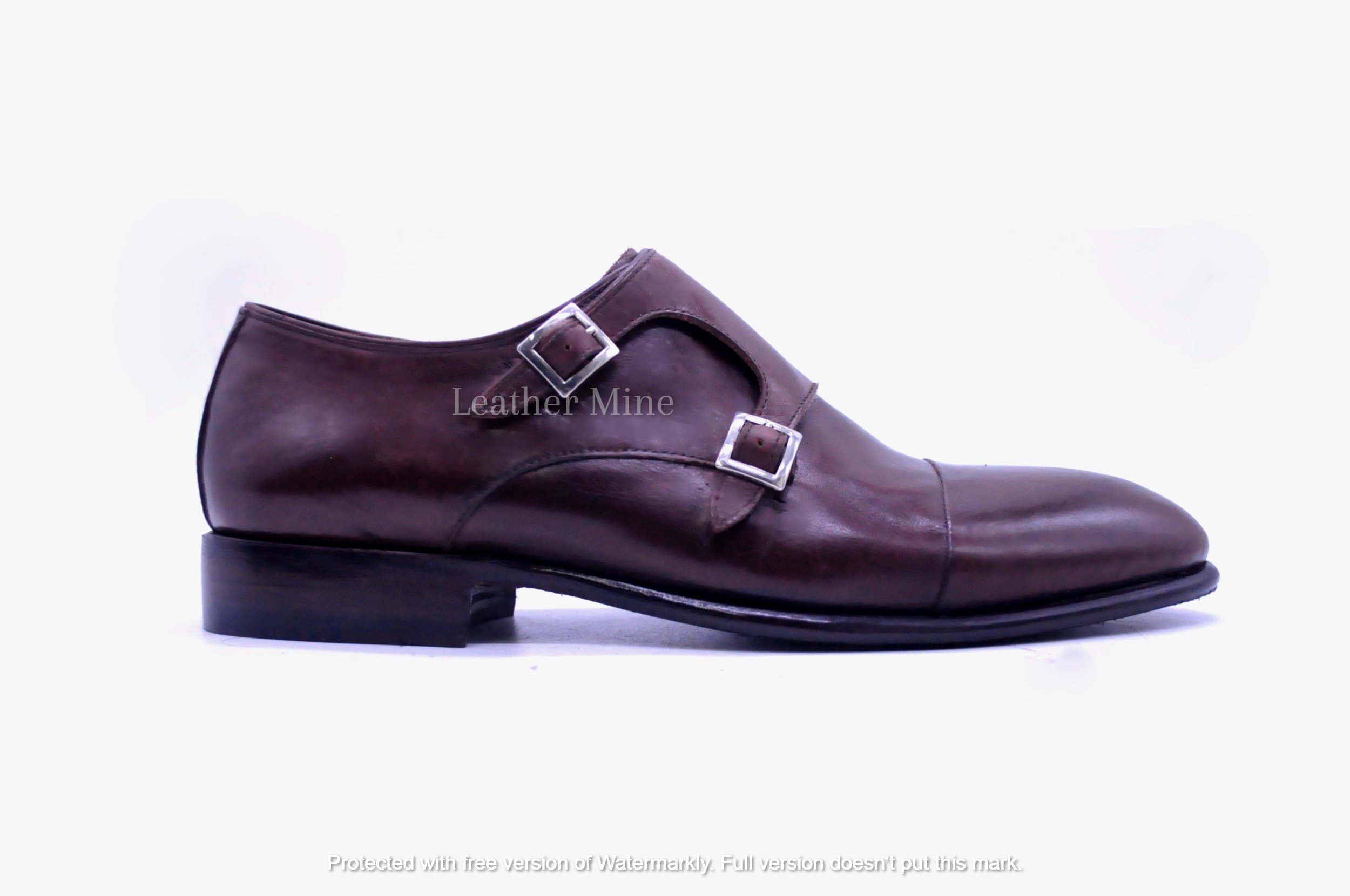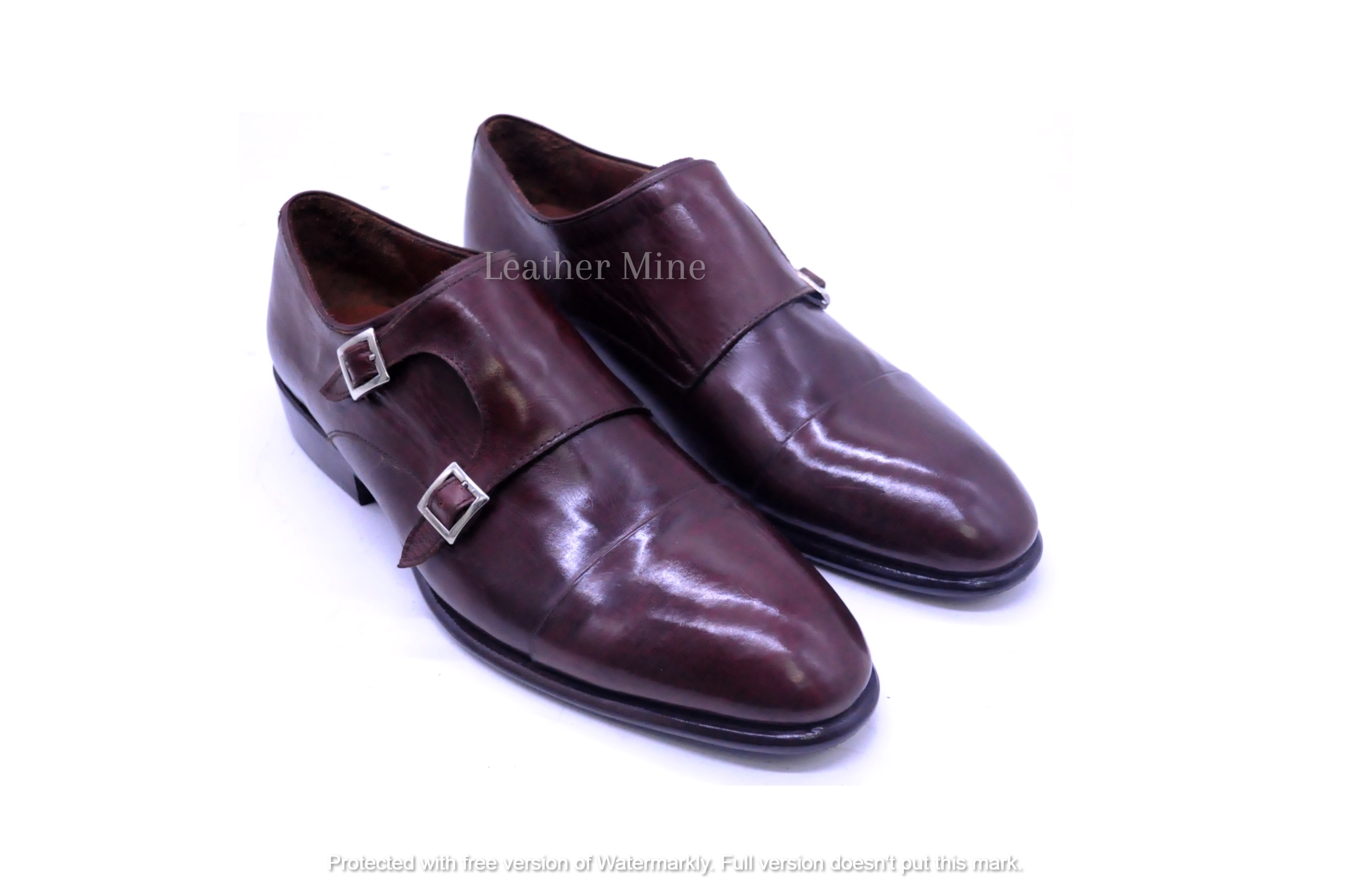 Men's Handmade Ox Blood Double Monk Leather Formal Shoes