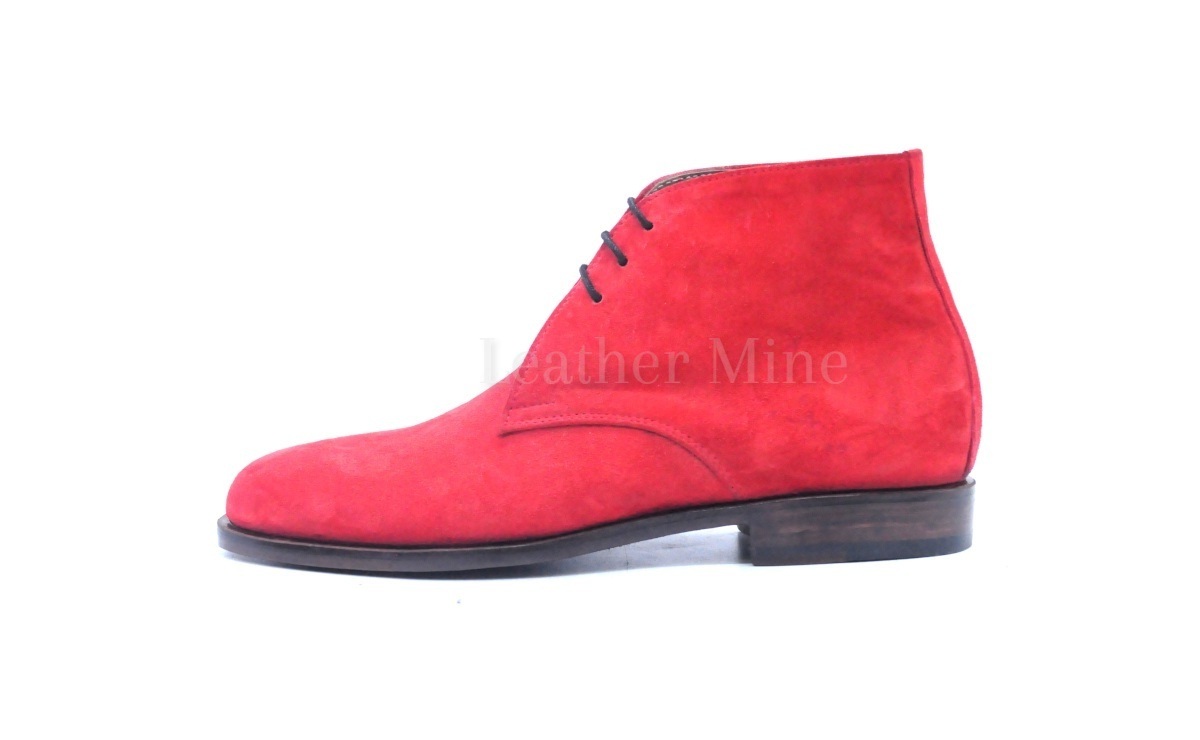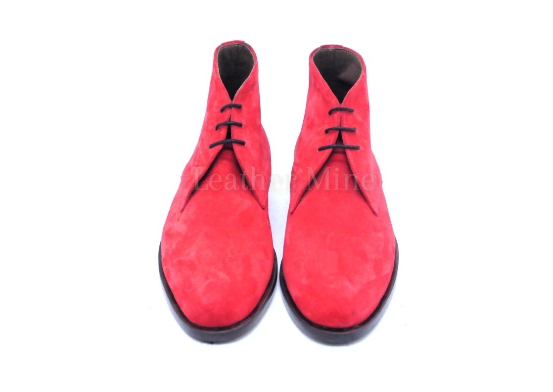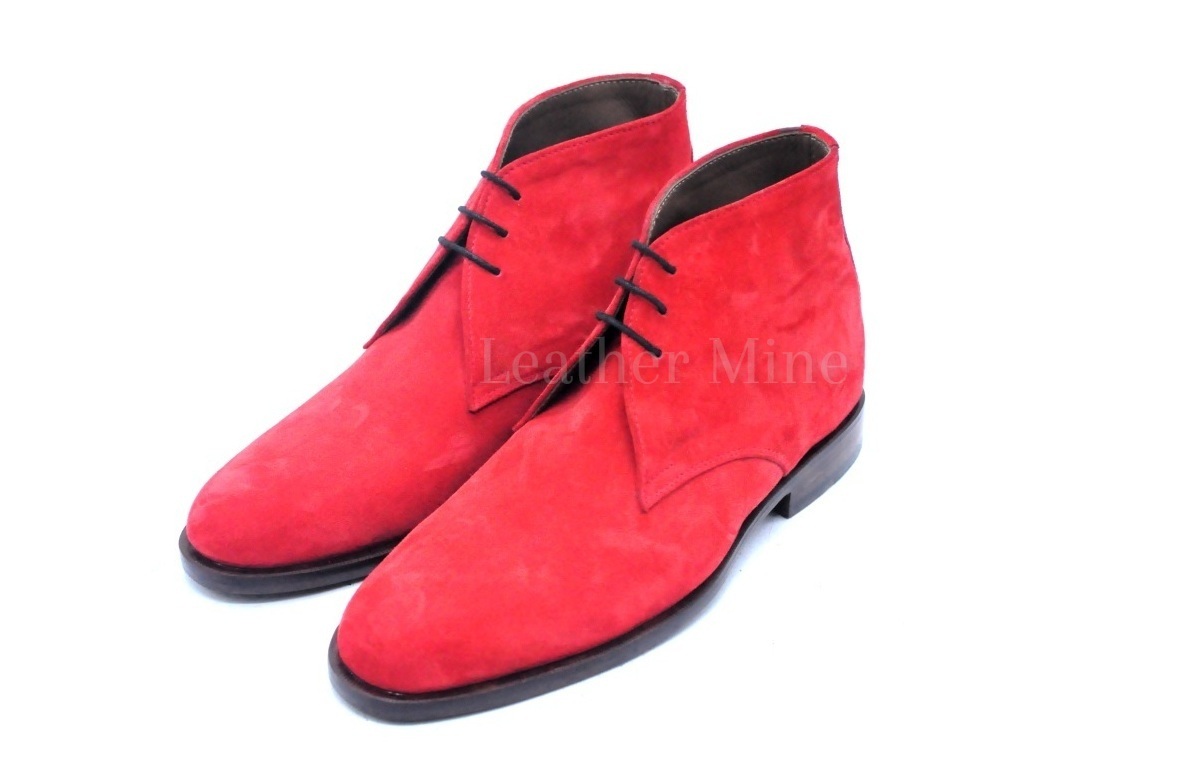 Handmade Red Suede Leather Chukka Boots, Men's Dress Boots