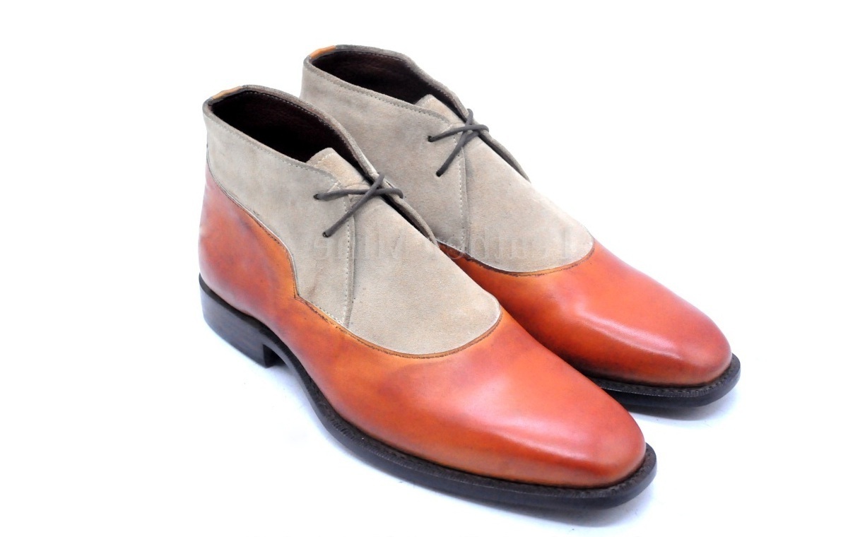 Handmade Tan Chukka Leather Boots, Men's Dress Boots