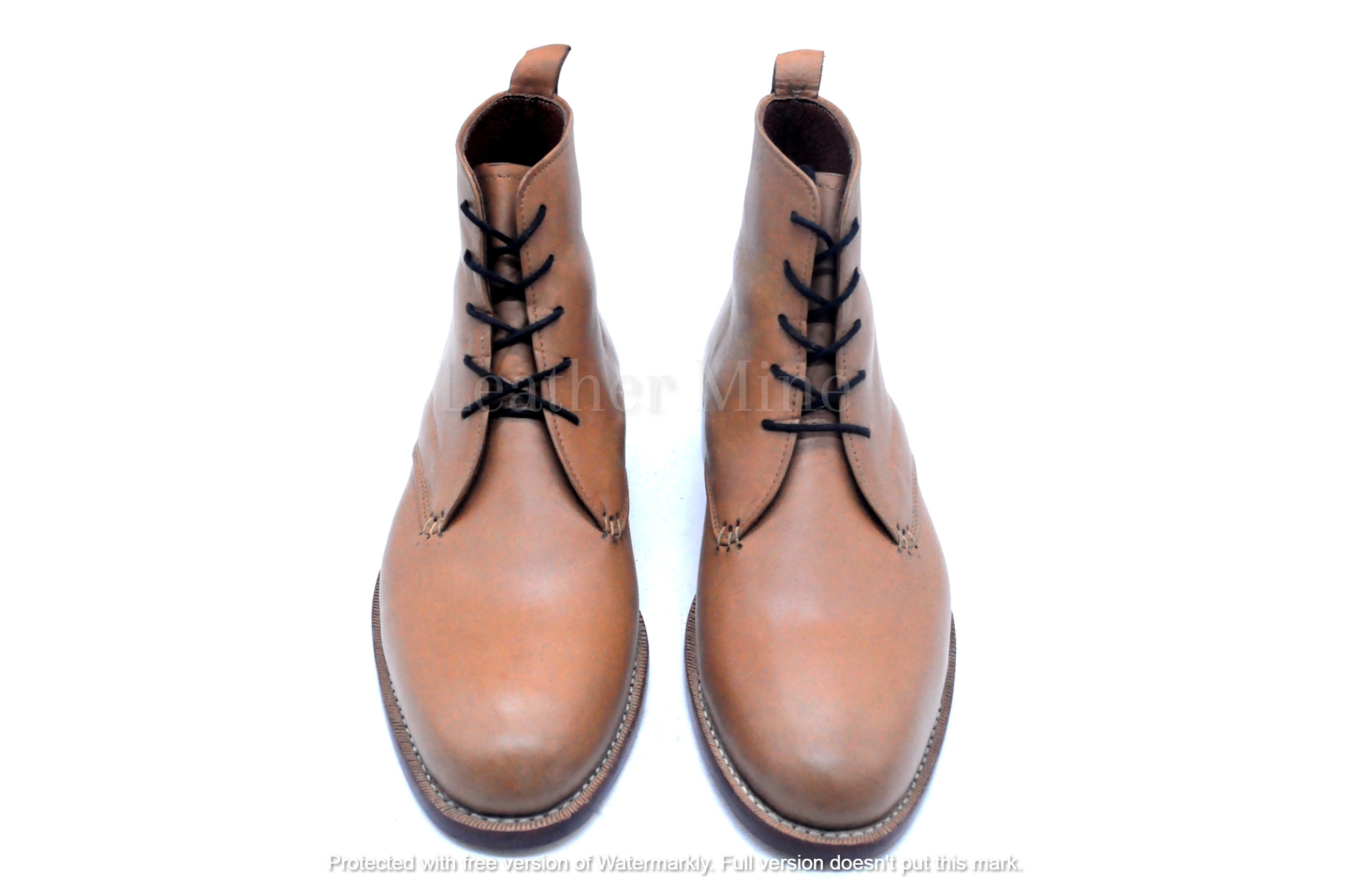 Men's Handmade Beige Leather Derby Dress Ankle Boots For Men