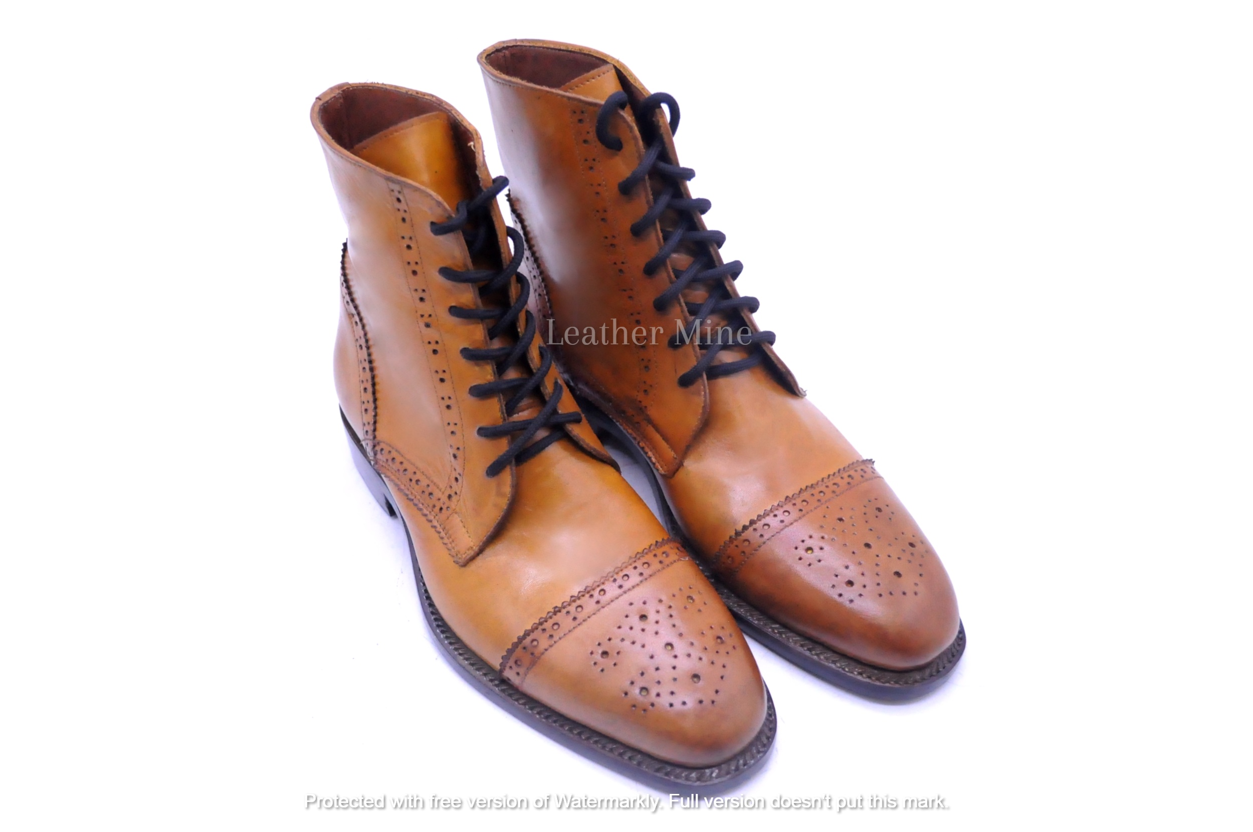 Handmade tan Leather Derby Dress Custom Made Boots For Men
