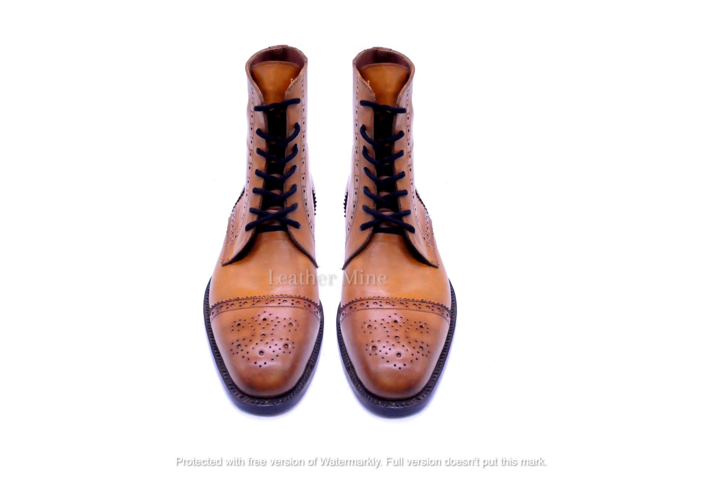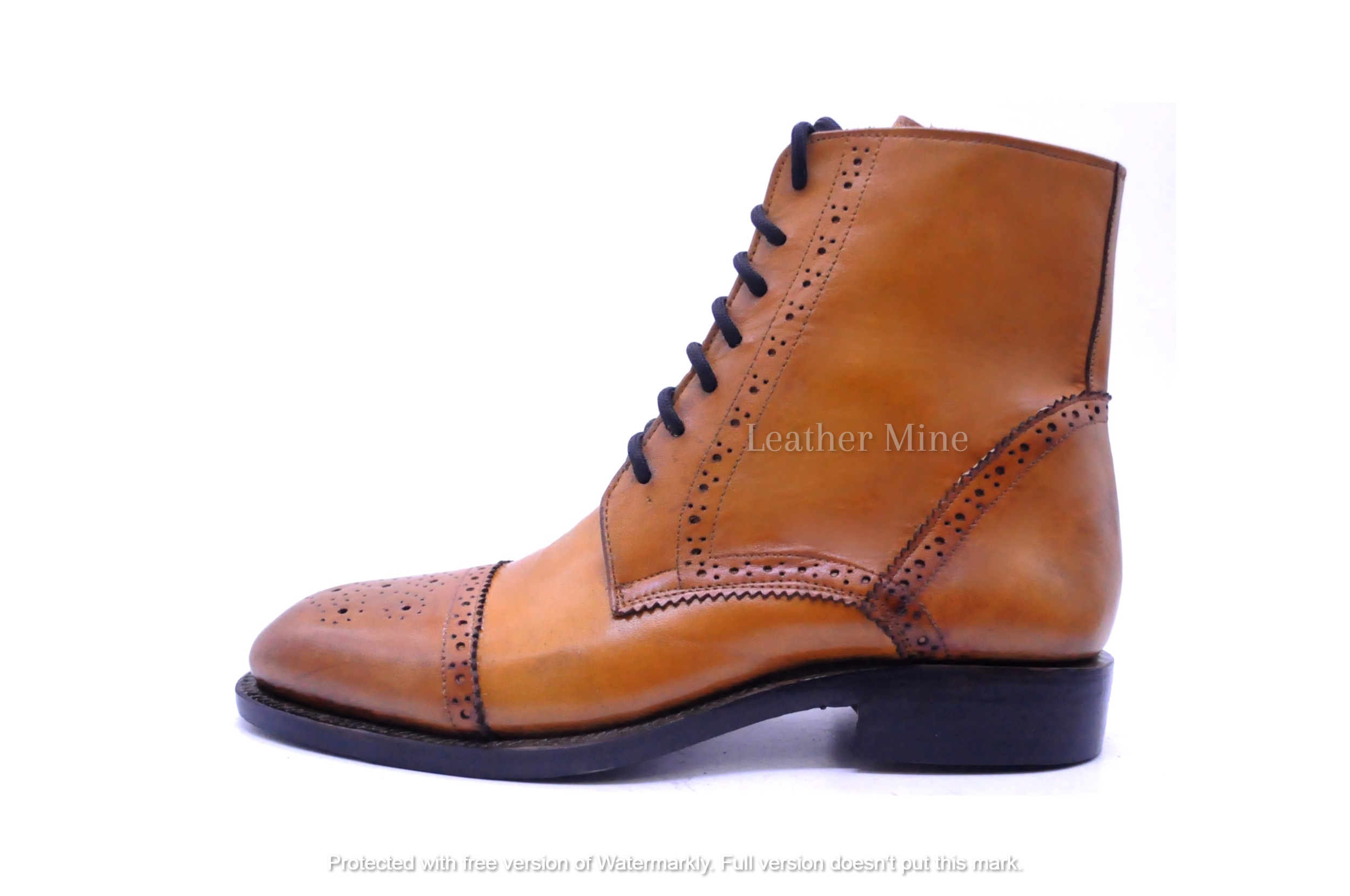 Men's Handmade tan Leather Derby Dress Ankle Boots For Men