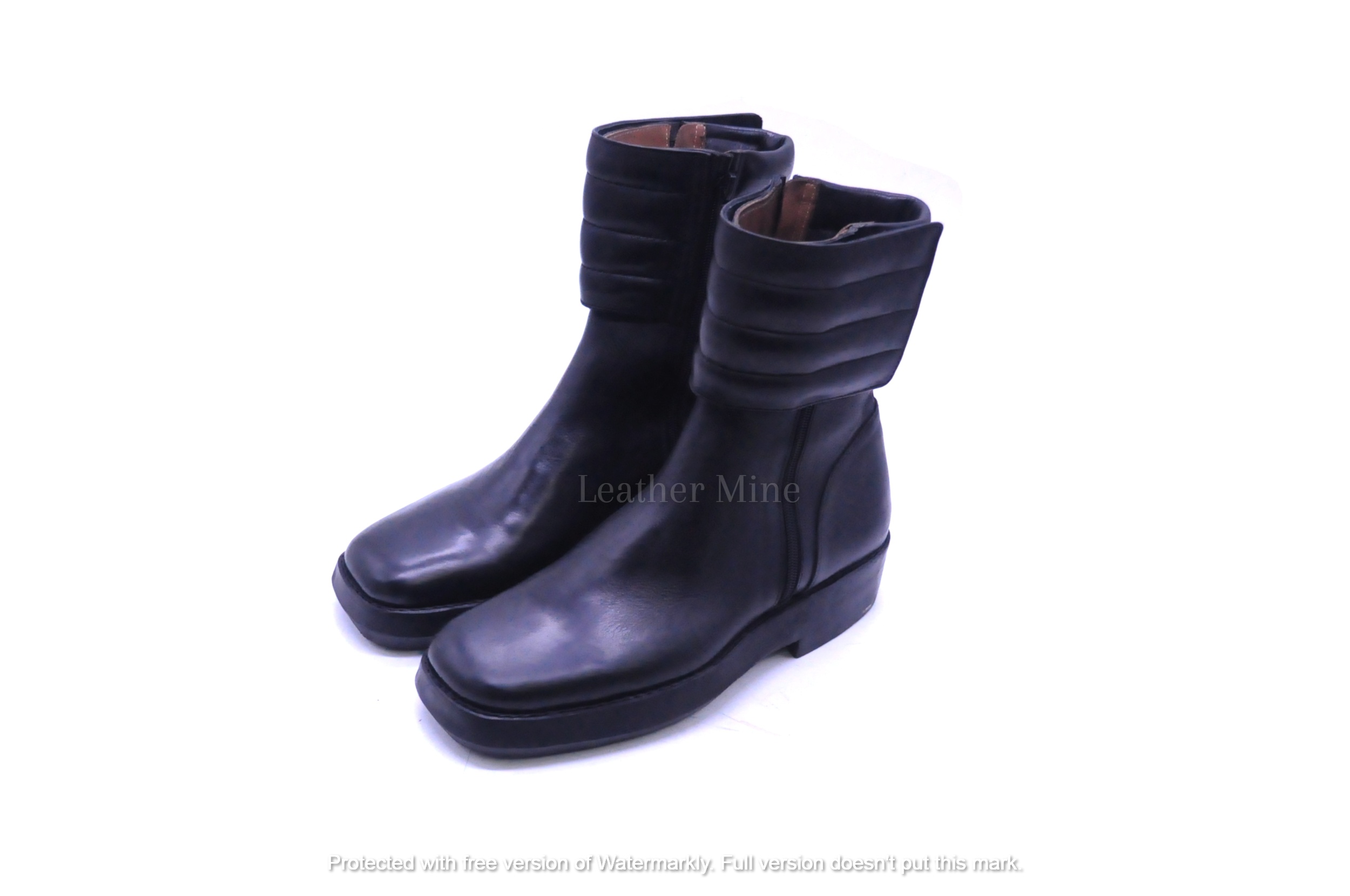 Handmade Men's Black Formal Leather Ankle High Boots For Men
