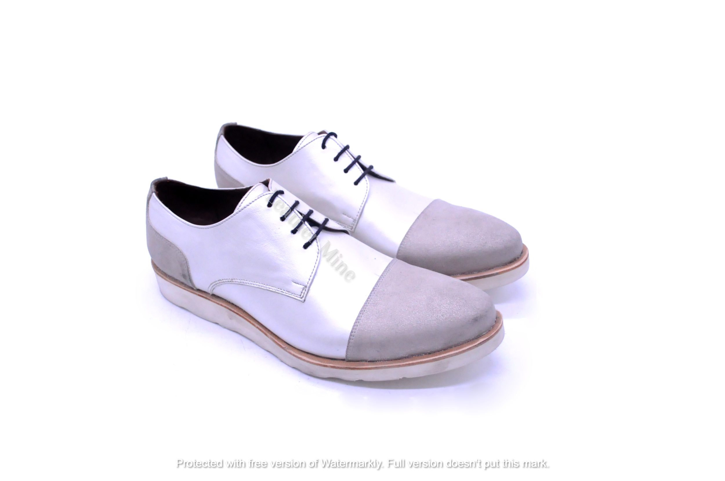 Handmade White Pearl Derby Leather Dress Shoes For Men