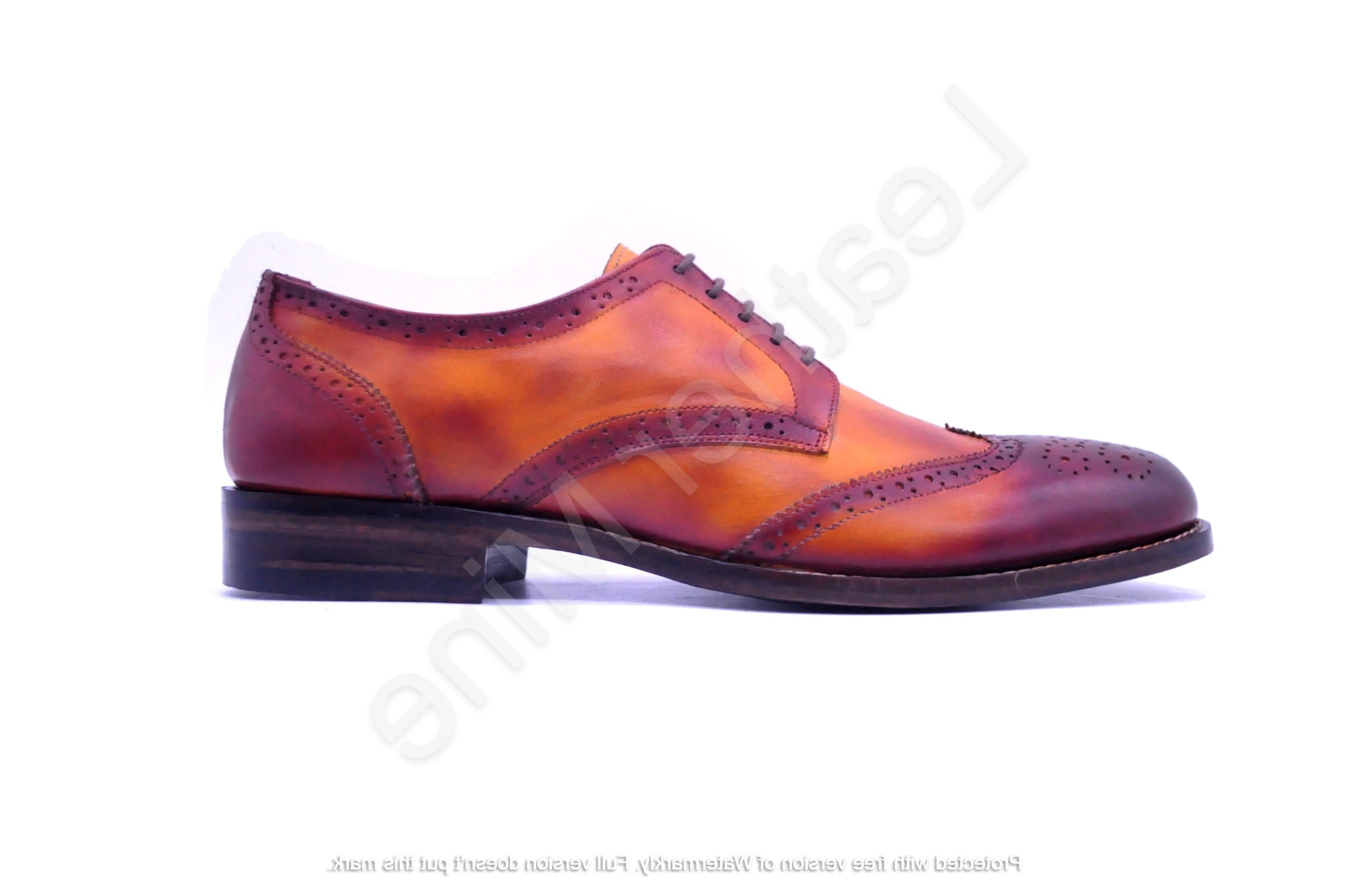 Men's Handmade Tan Patina Derby Leather Formal Shoes
