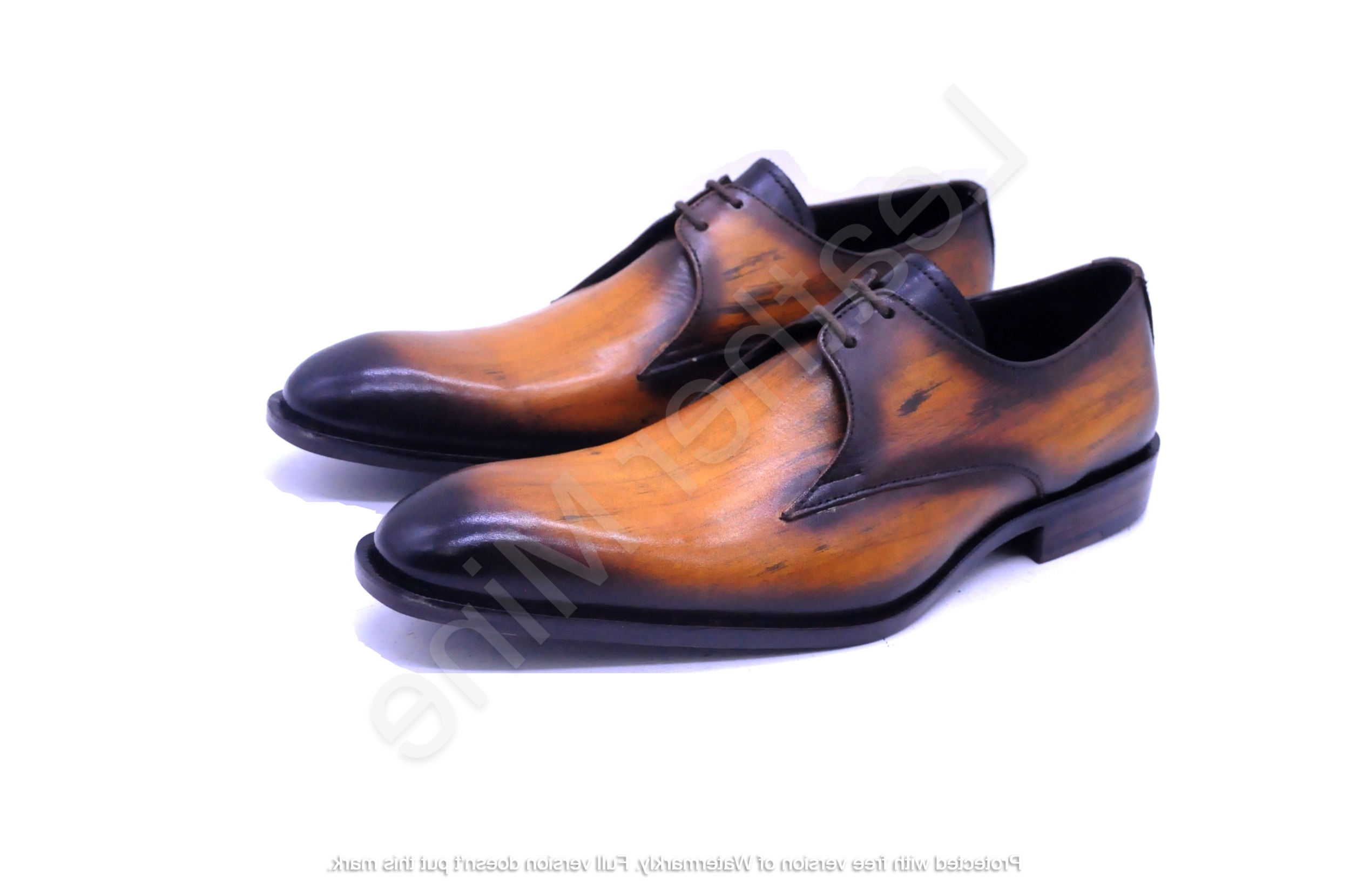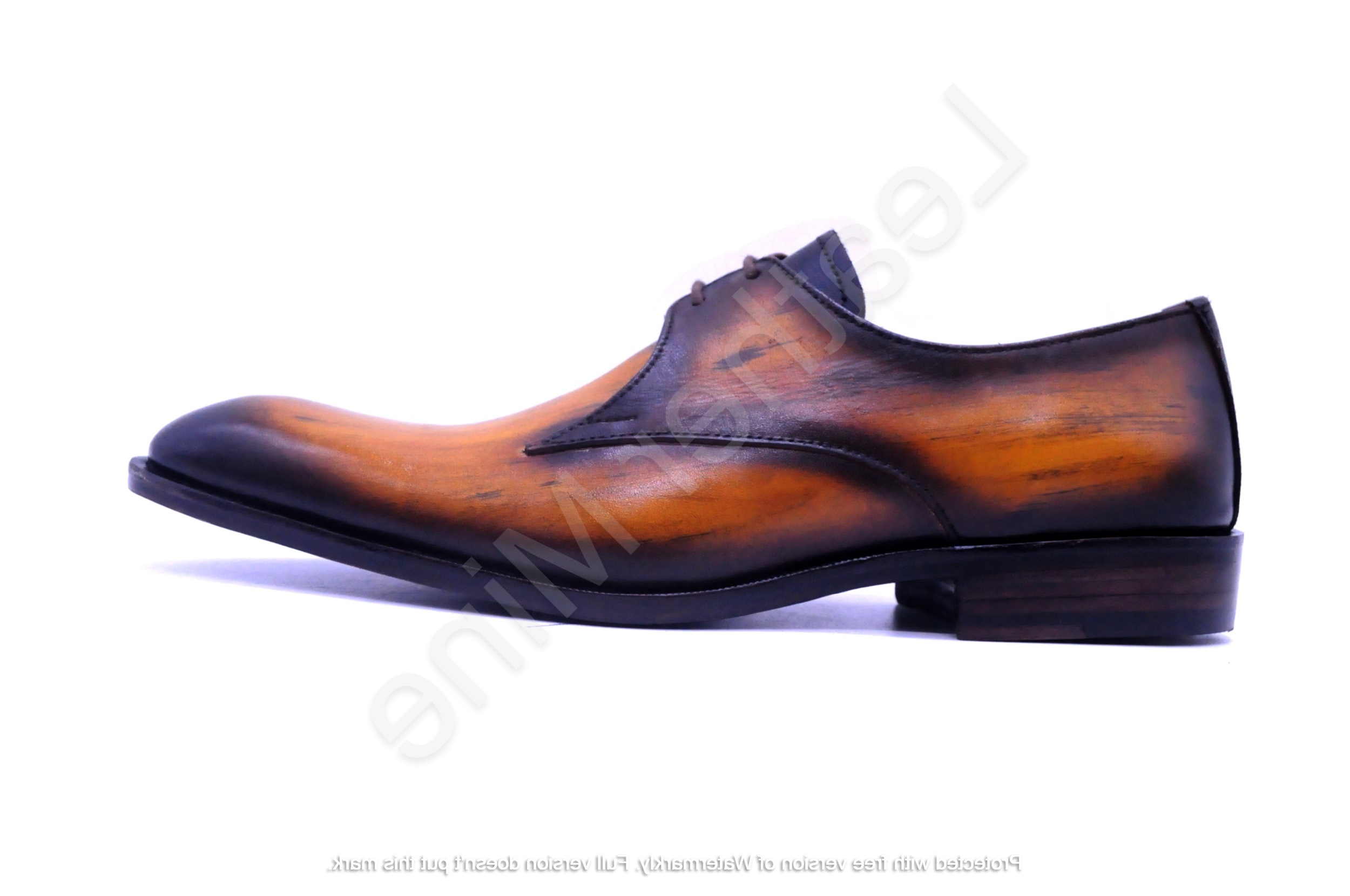 Men's Handmade Tan Patina Derby Leather Formal Shoes