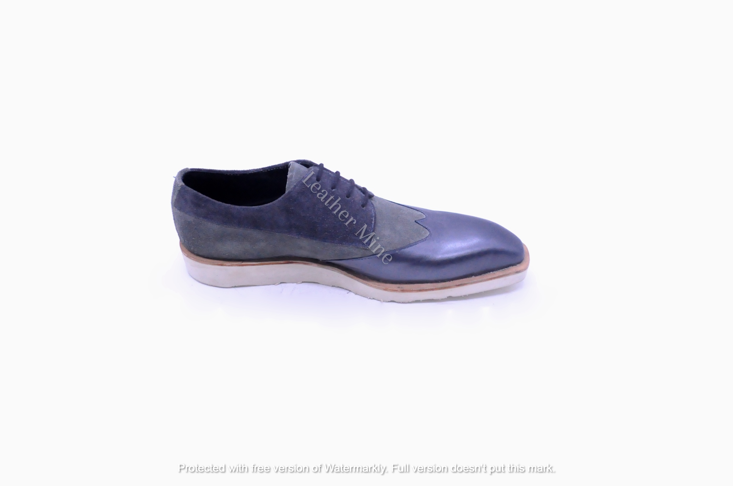 Men's Handmade Gray Leather Derby Dress Toe Cap Shoes For Men