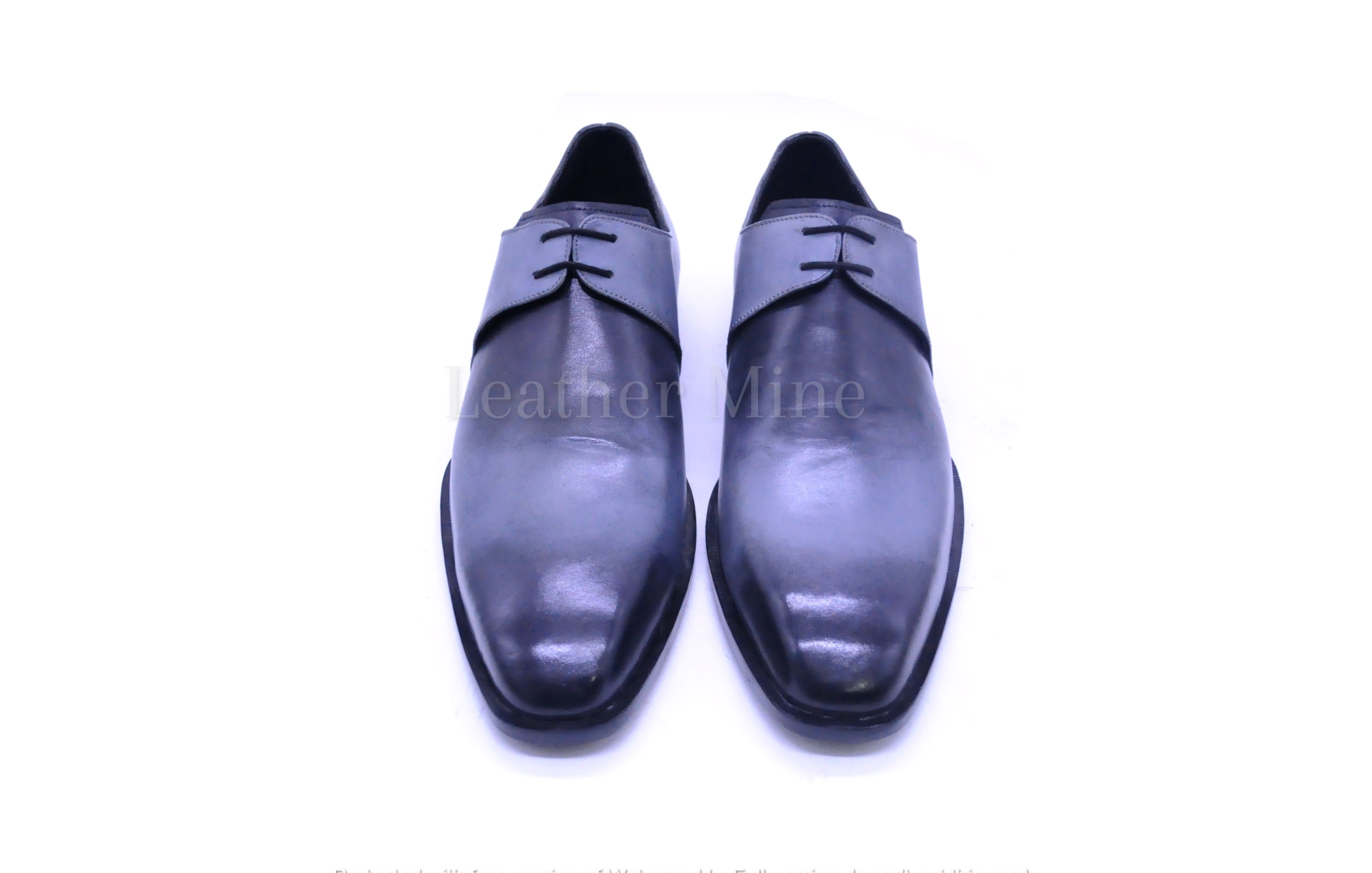 Men's Handmade Gray Patina Leather Derby Dress Toe Cap Shoes For Men.