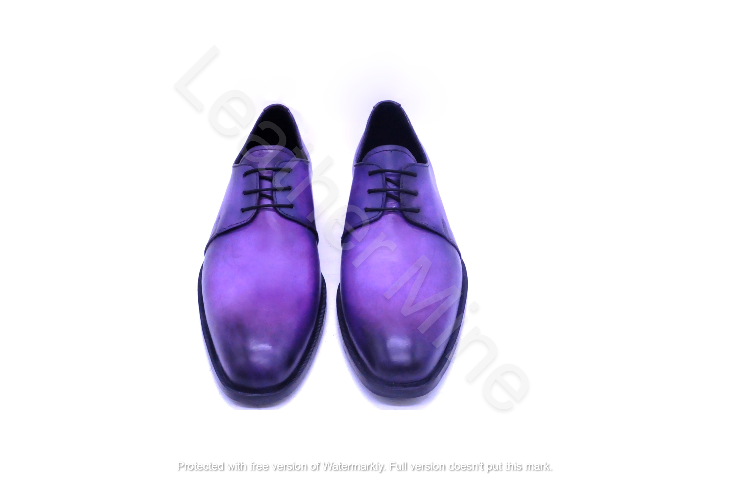 Men's Handmade Purple Patina Leather Derby Dress Toe Cap Shoes For Men