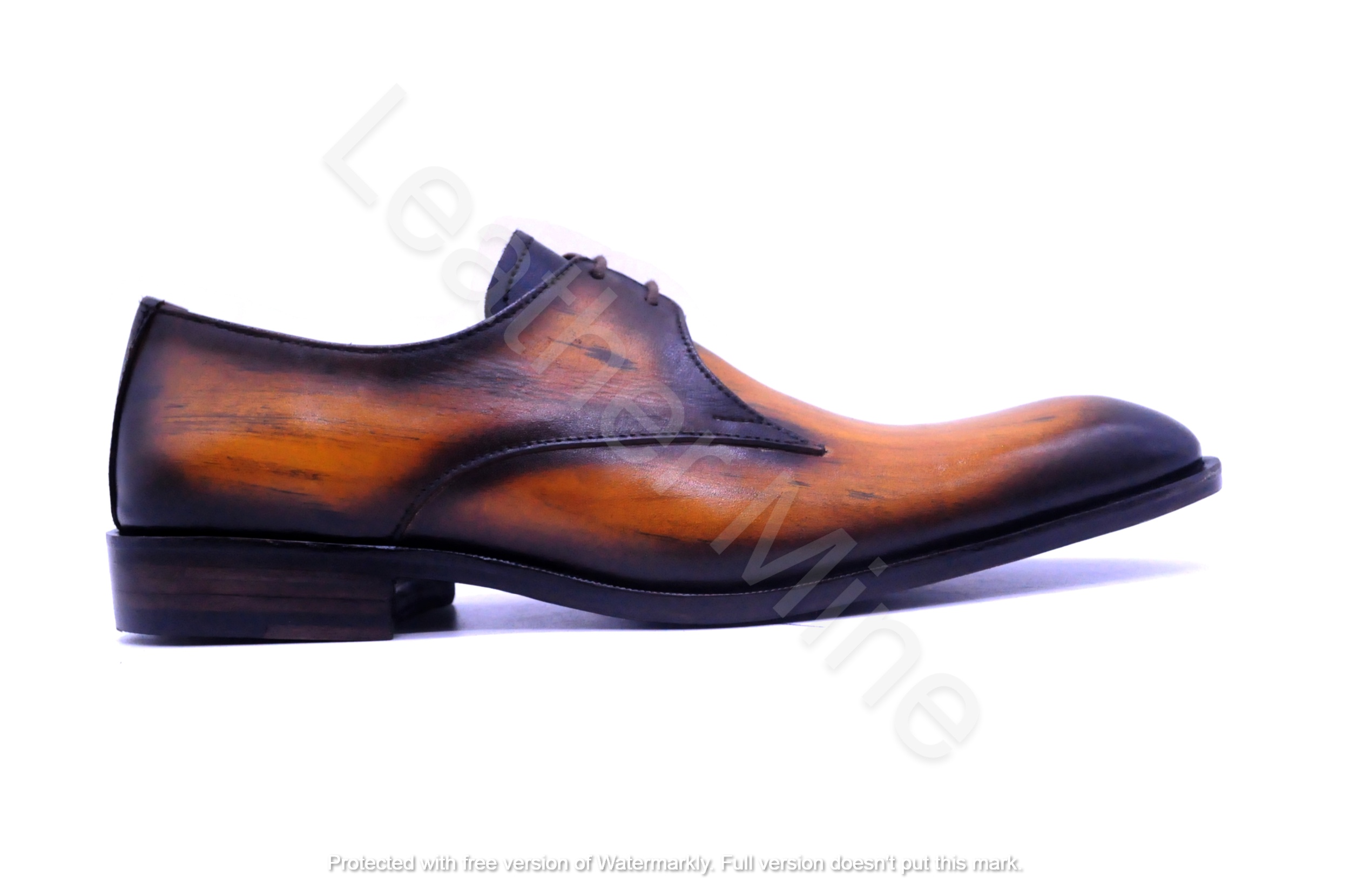 Handmade Tan Patina Derby Leather Formal Dress Shoes For Men