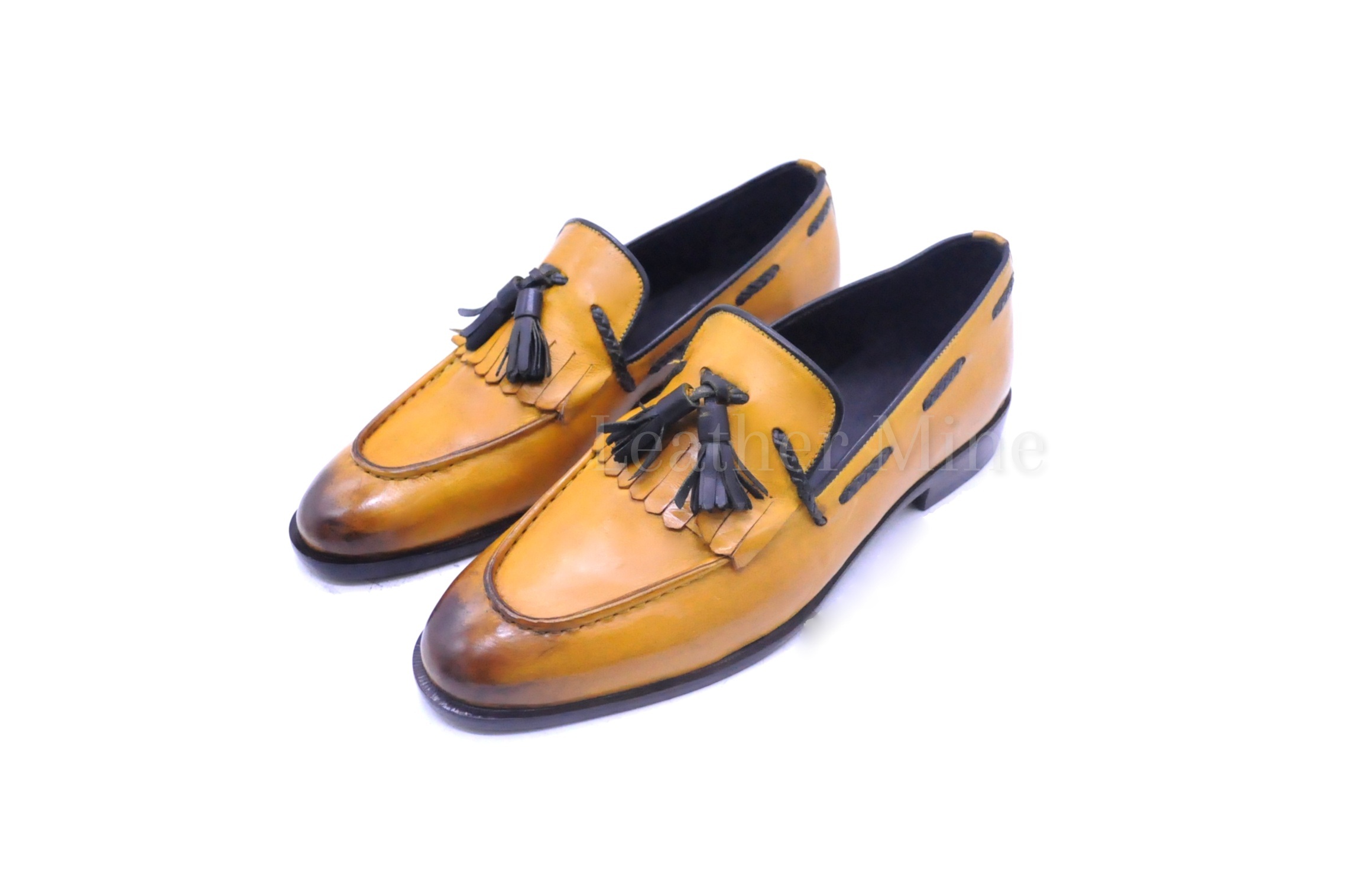Handmade Men's Yellow Loafers Leather Shooes For Men
