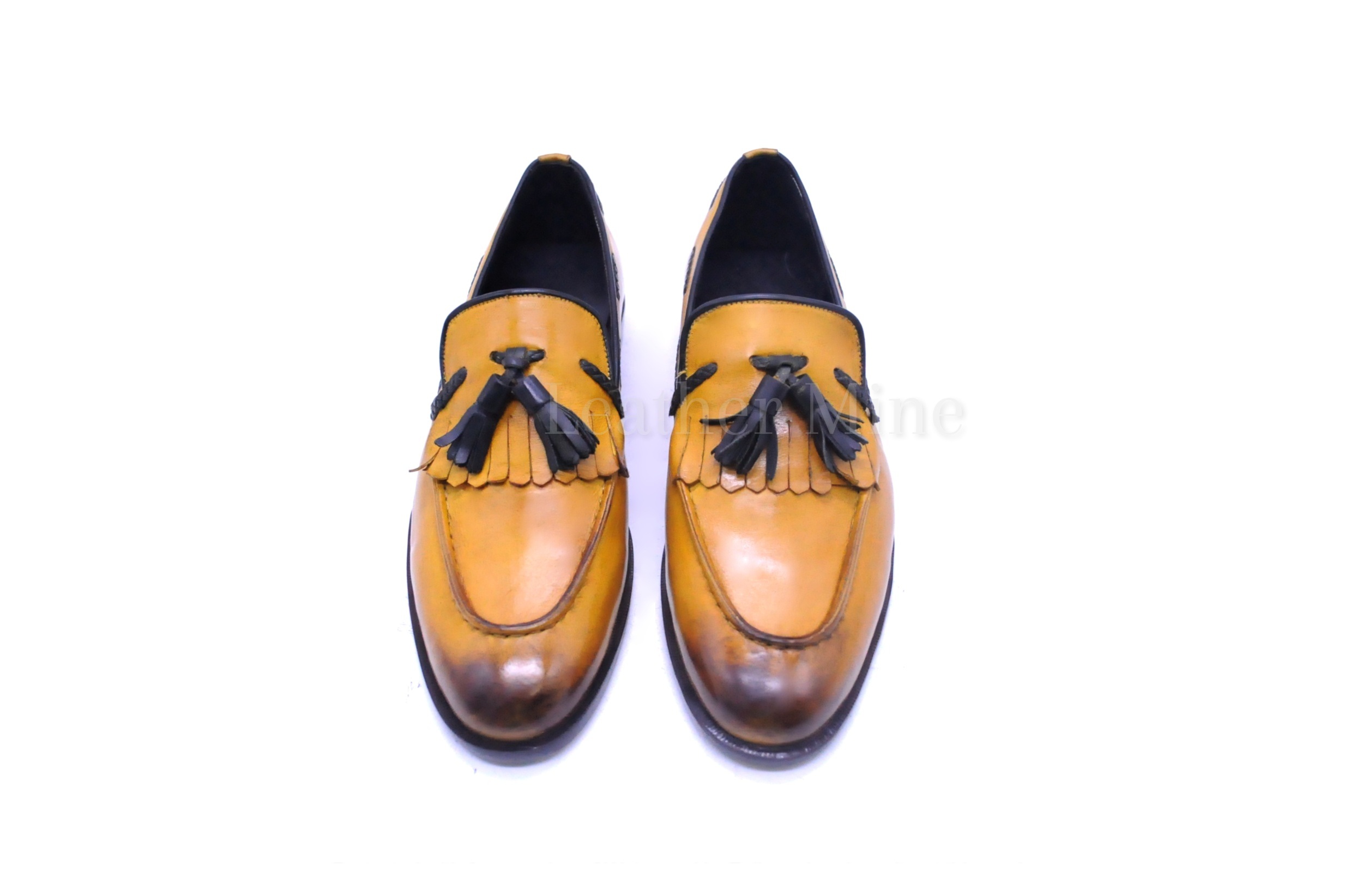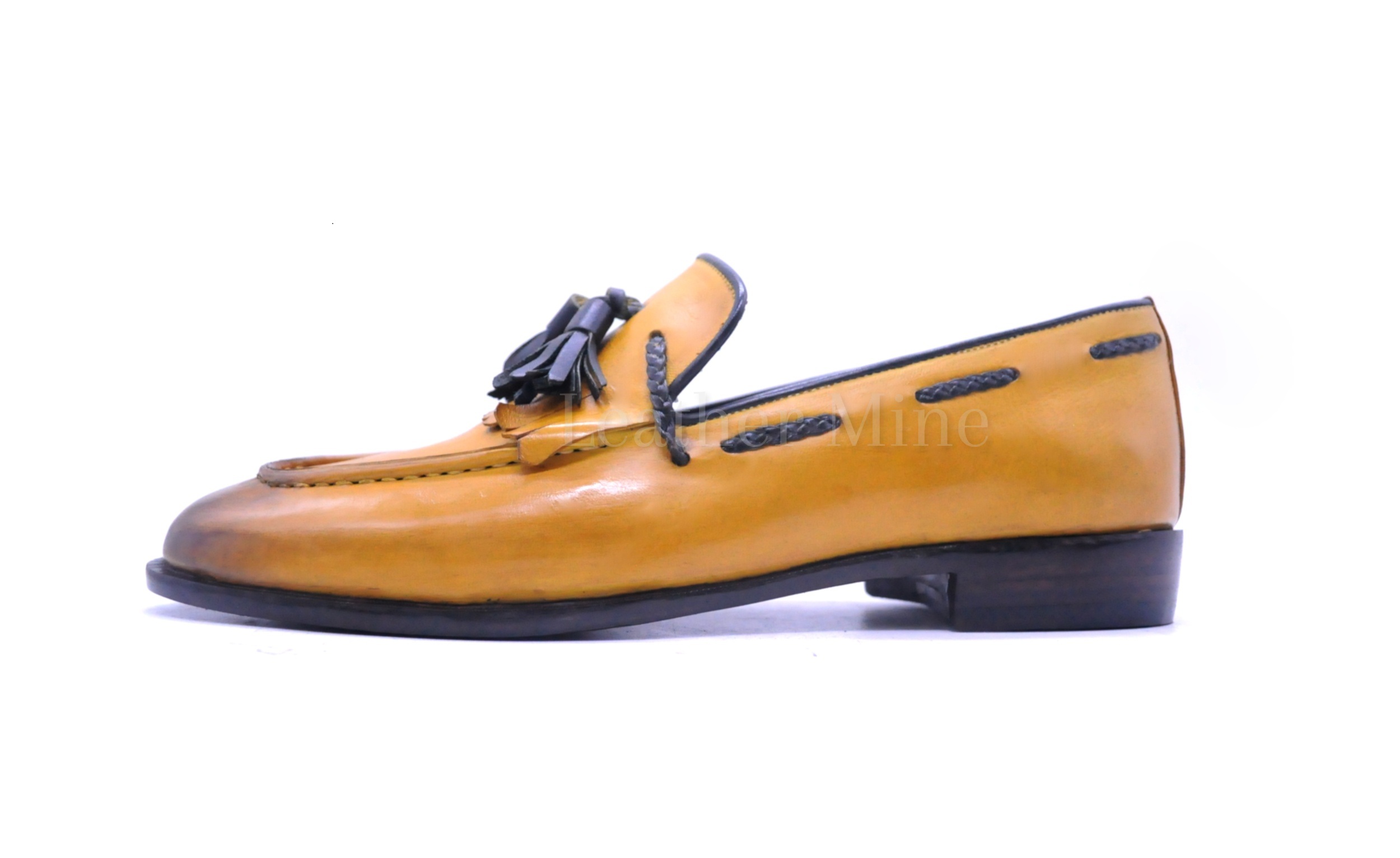 Men's Handmade Yellow Leather Loafers dress Shoes