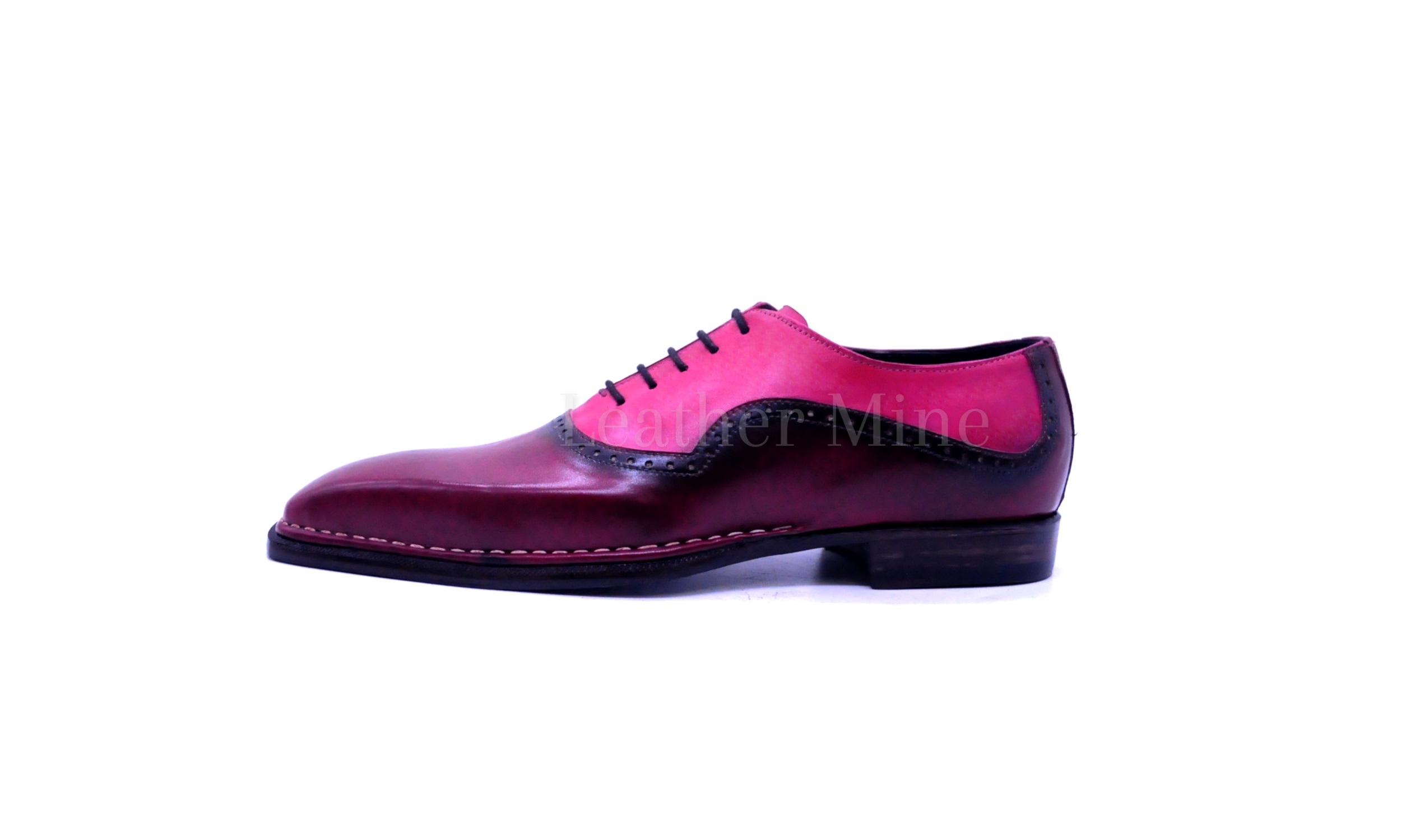 Handmade Burgundy Patina Oxfords dress Shoes For Men