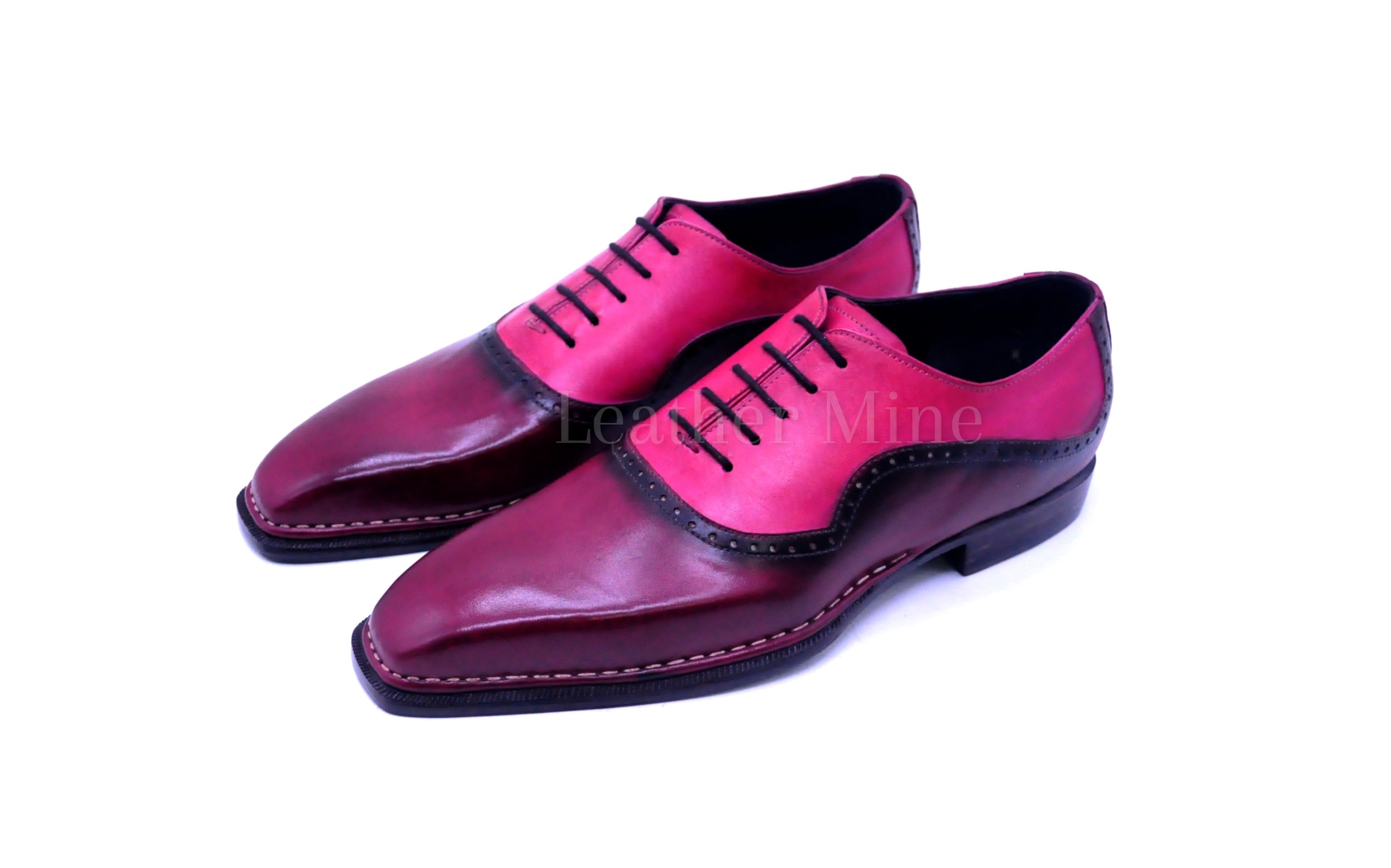 Handmade Burgundy Patina Leather Oxfords Custom Made Shoes For Men